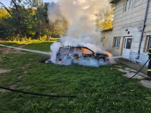 Conducătorul auto a observat că iese fum din compartimentul motor la scurt timp după ce a vrut să pornească mașina. Bărbatul a încercat să stingă flăcările, dar nu a reușit și a sunat după ajutor, la 112.