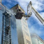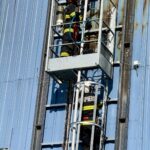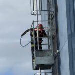 Intervenția a durat aproape două ore și a fost îngreunată de dificultatea lucrului la înălțime și accesul limitat către zona afectată.