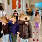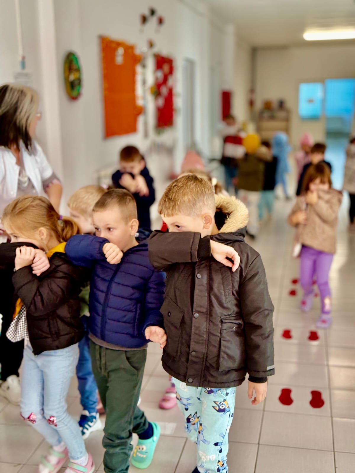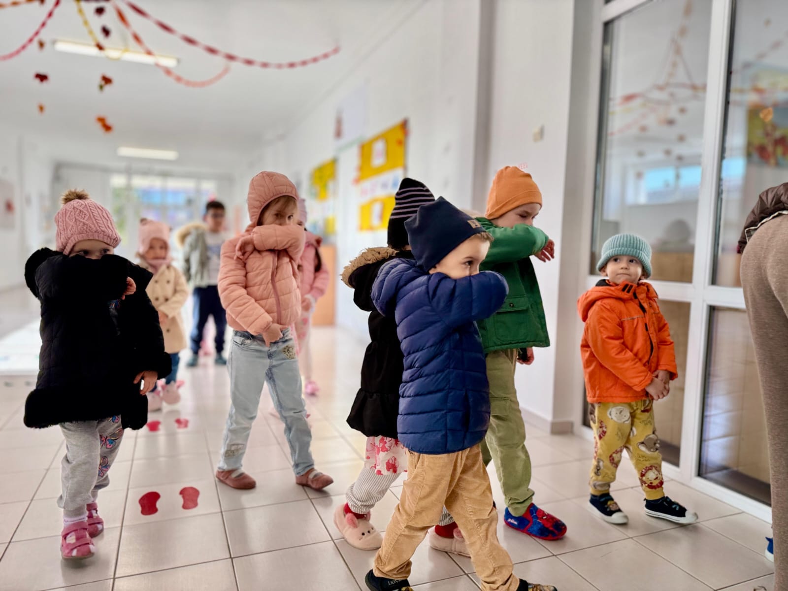 Însoțiți de cadrele didactice, copiii au ieșit din sălile de clasă în momentul în care au auzit alarma și s-au îndreptat spre locul de adunare.