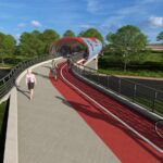 Pasarela ciclo- pietonală are o lungime totală de 279,03 m (plus 20,52 m pentru bicicliști) și are scopul de a „facilita mobilitatea durabilă între zonele urbane separate de DN29” și de a „asigura conectivitatea sigură și accesibilă pentru pietoni și bicicliști prin construirea unei infrastructuri dedicate cu lățimi variabile între 5,60 m și 9,65 m”.