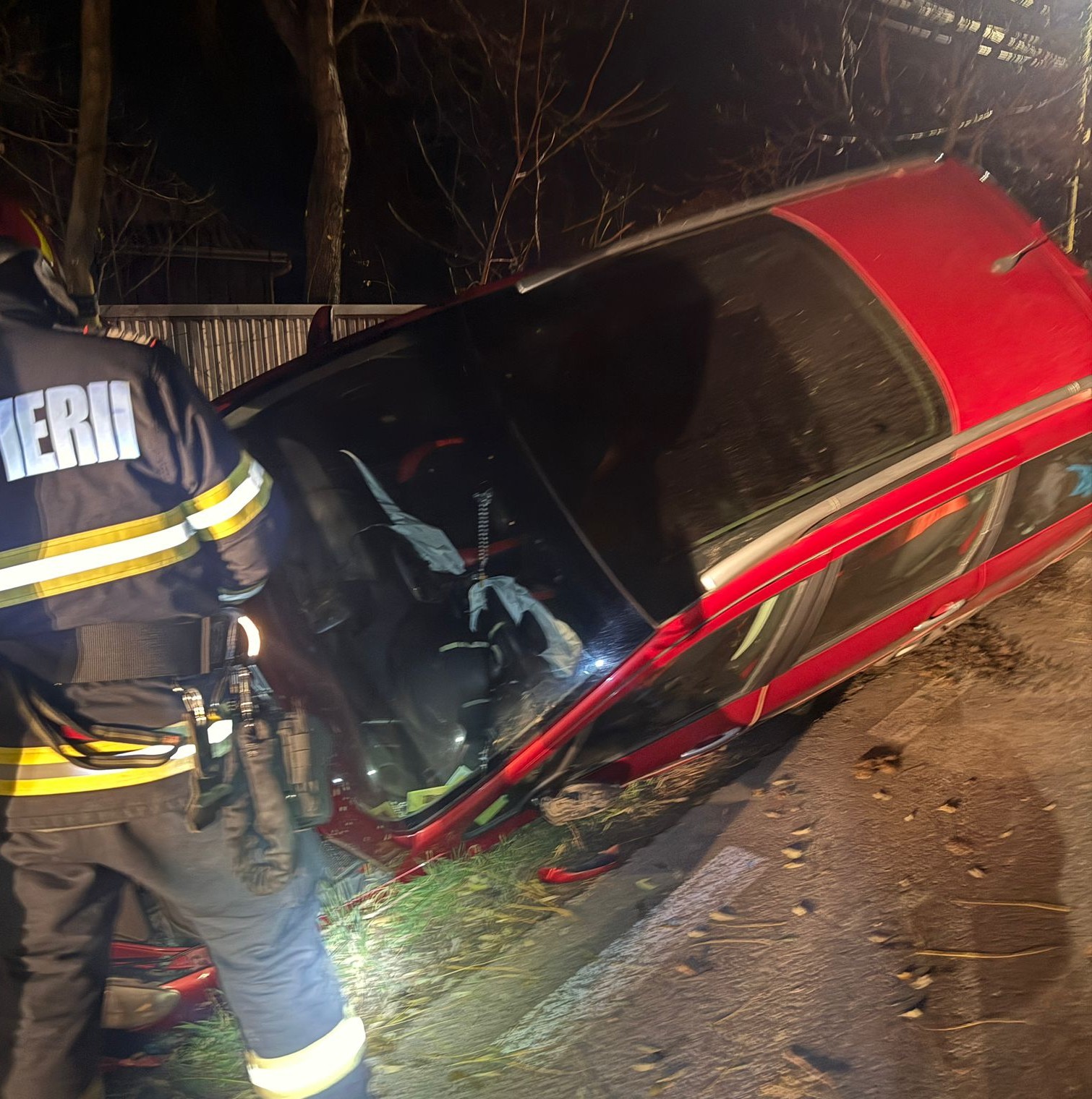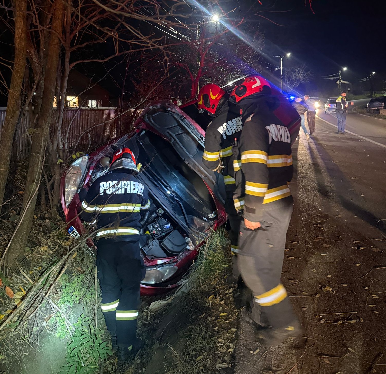 Aceștia au constatat faptul că autoturismul era în afara părții carosabile, răsturnat pe o parte și că nu erau persoane încarcerate.