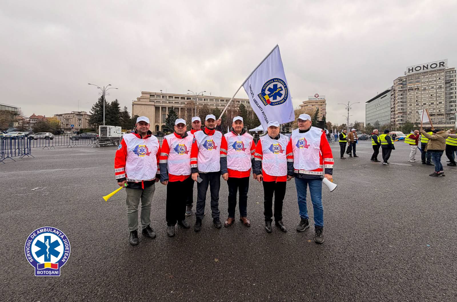 Reprezentanți ai Sindicatului Ambulanța – Botoșani sunt prezenți, miercuri, la protestul organizat de BNS în Piața Victoriei din București. Ei reclamă măsurile de austeritate şi cerând stoparea politicilor guvernamentale care alimentează inflaţia. În plus, ei cer creşterea salariului minim pe economie, stoparea reformelor făcute prin tăieri de salarii şi posturi în sectorul bugetar, dar şi reducerea evaziunii fiscale.