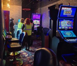 În cadrul activităților, în incinta locației au fost identificate două aparate tip slot machine pentru care operatorul economic nu deținea licență sau autorizație de exploatare. În momentul efectuării verificărilor, aparatele erau utilizate de două persoane.
