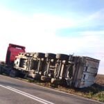Un accident rutier a avut loc, vineri, pe un drum național din județul Botoșani. Accidentul s-a produs pe DN 24, pe ruta Botoșani – Săveni, unde un camion încărcat cu aproximativ 25 de tone de semințe de floarea-soarelui s-a răsturnat în afara părții carosabile.