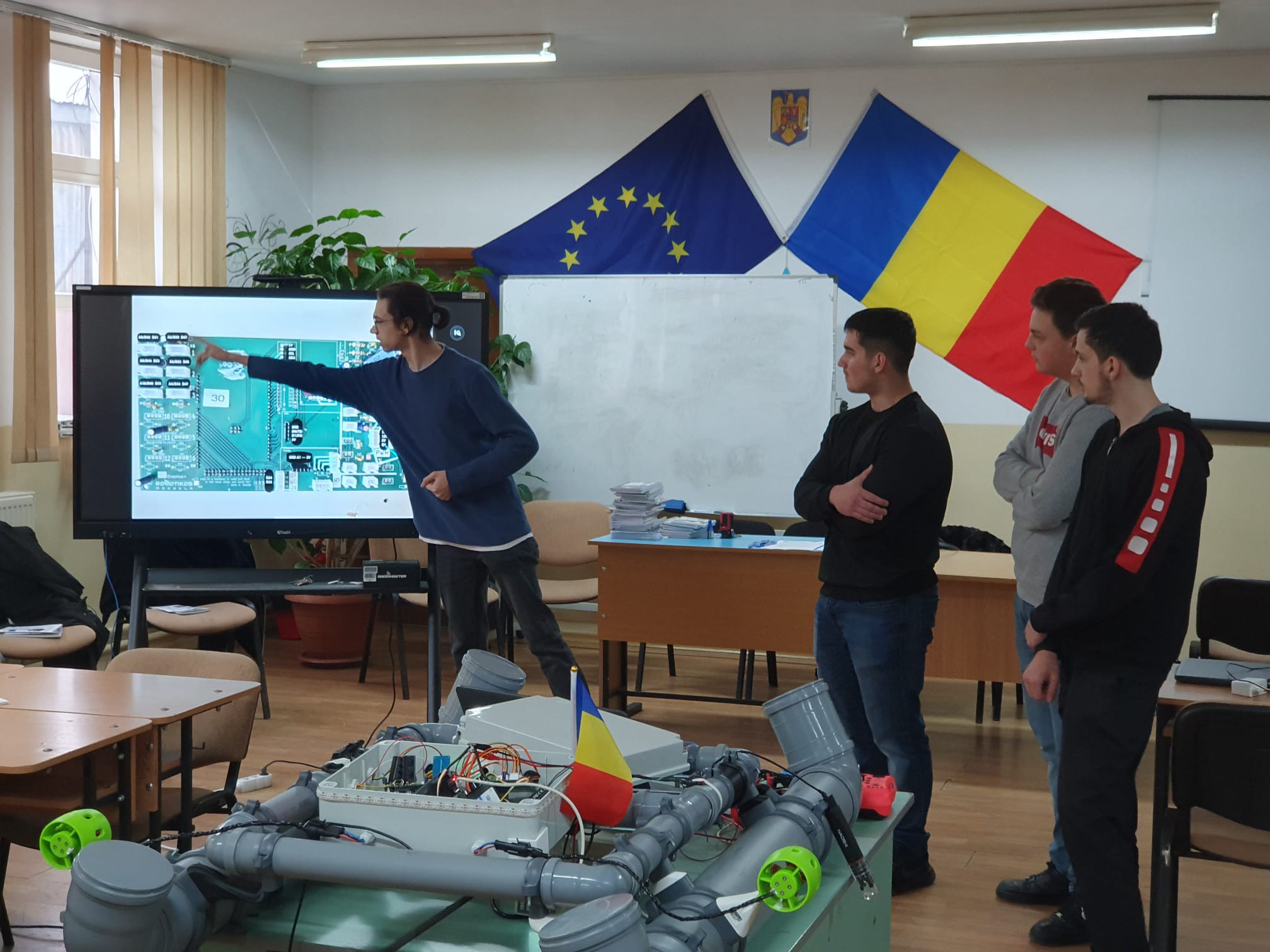 Elevii unui liceu din Botoșani au construit 16 bărci robotizate. Ei au prezentat, zilele trecute, în sala de festivități a Colegiului Tehnic "Gheorghe Asachi" Botoșani, procesul laborios de construie a celor 16 bărci robotizate.