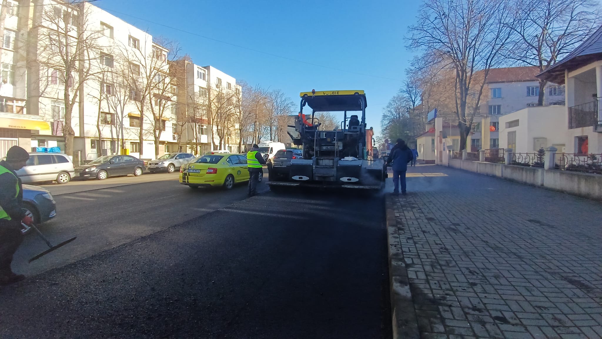 VIDEO A început asfaltarea unui tronson din Calea Națională din Botoșani, după scoaterea șinelor de tramvai