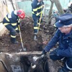 Pentru a o salva, aceștia au săpat în jurul căminului, au spart unul dintre pereții de beton și au amenajat o rampă care să permită eliberarea animalului. Din fericire, bovina a fost scoasă nevătămată. Intervenția, care s-a încheiat cu puțin timp în urmă, a durat mai puțin de o oră.