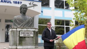 Statuia marelui nostru poet, Mihai Eminescu, i-a inspirat pe elevi să rostească mândri versurile ,,Ce-ți doresc eu ție, dulce Românie,/ Țara mea de glorii, țara mea de dor…”.
