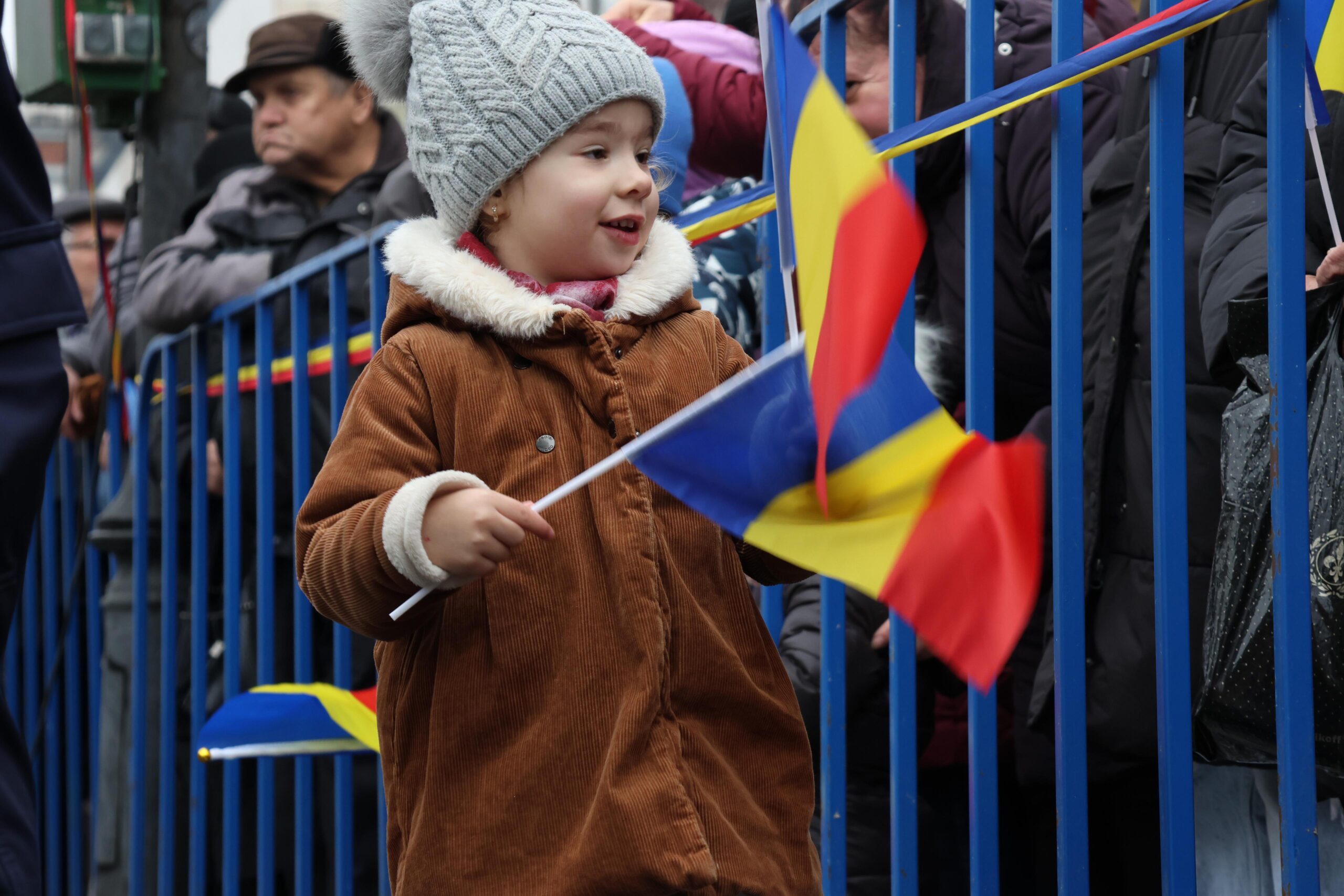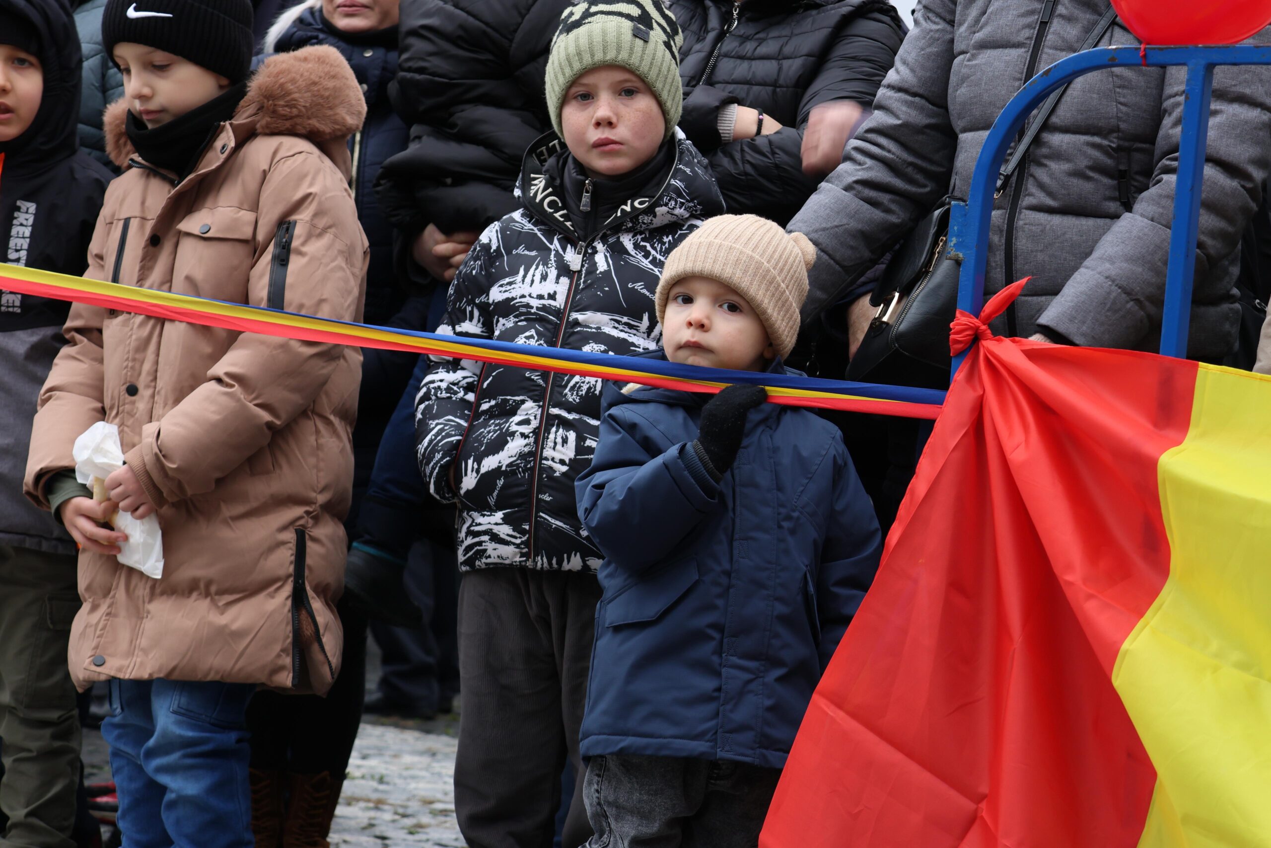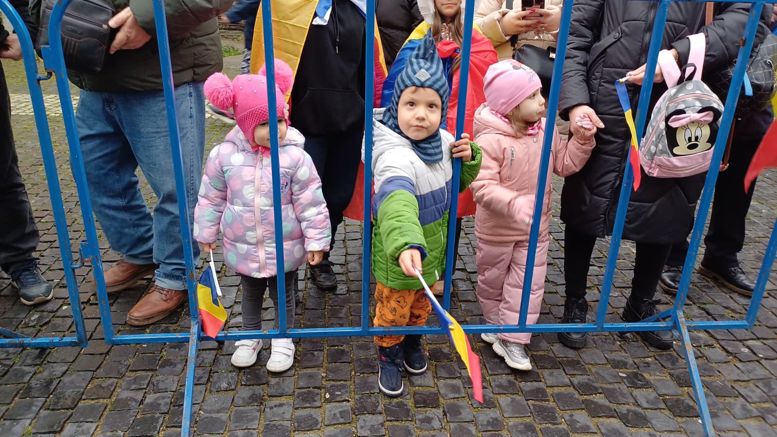 Cu stegulețe în mâini, cei mici s-au aliniat curioși să privească evenimentele dedicate celei mai importante zile a tuturor românilor. În pieptul lor bate o inimă de român pur, bun, nealterată de vicisitudinile vieții.