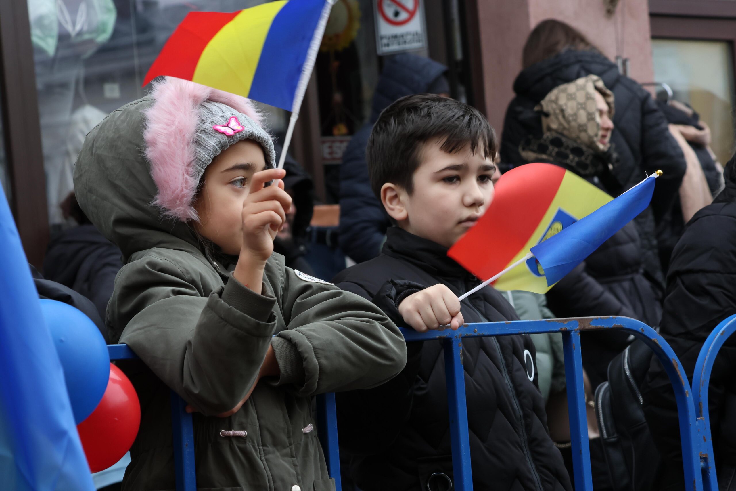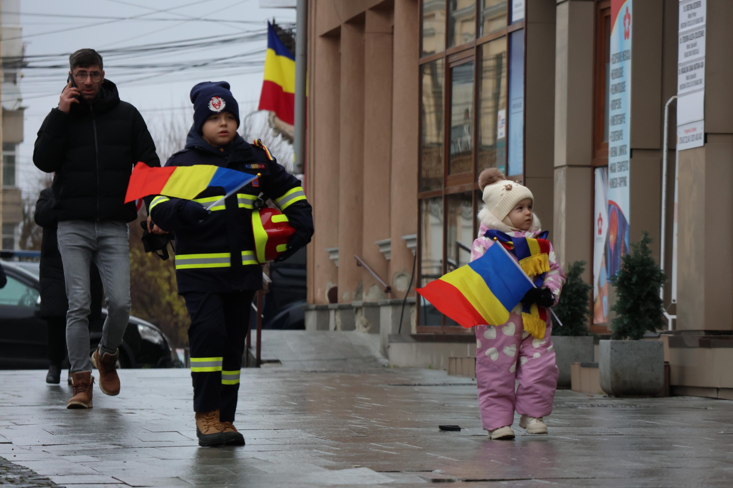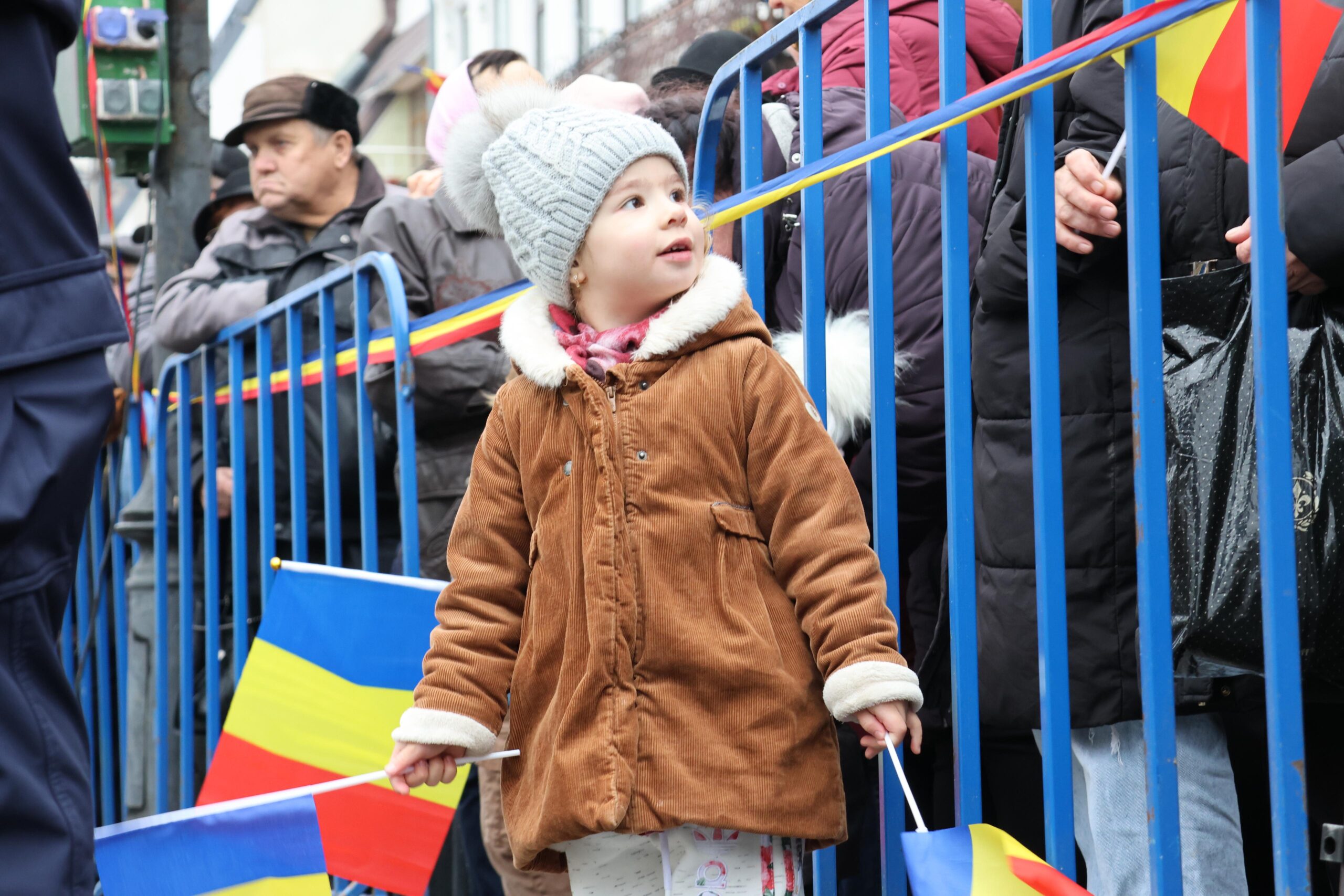Cu stegulețe în mâini, cei mici s-au aliniat curioși să privească evenimentele dedicate celei mai importante zile a tuturor românilor. În pieptul lor bate o inimă de român pur, bun, nealterată de vicisitudinile vieții.