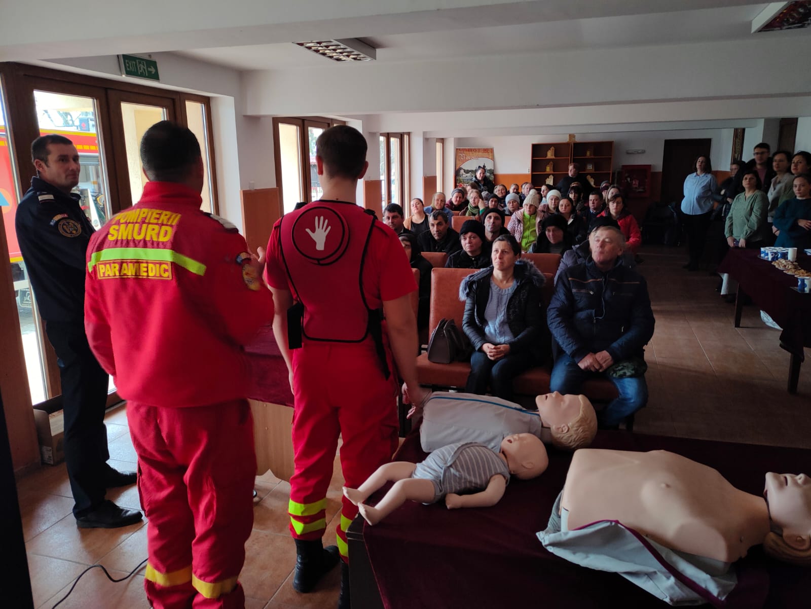 Încă din primele minute, participanții au fost implicați în activități practice. Paramedicii SMURD le-au prezentat modul corect de acordare a primului ajutor în caz de înec cu bol alimentar, cu ajutorul vestelor Heimlich special destinate instruirii. Ulterior, asistenții sociali au exersat manevrele de resuscitare pe manechine, pentru a dobândi deprinderi esențiale în acordarea primului ajutor.