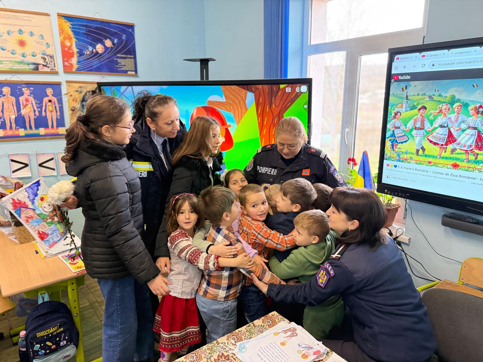 În această dimineață, pompierii, însoțiți de cei copiii lor, au ajuns la școala și grădinița din Ringhilești nu cu sirene și echipamente, ci cu daruri, zâmbete și inimile pline de căldură. Pentru gazde, vizita salvatorilor a transformat o zi obișnuită într-una cu adevărat specială, iar pompierii au fost, la rândul lor, surprinși cu desene, flori, zâmbete, îmbrățișări, cântece și poezii – gesturi care le-au adus emoție și bucuria de a simți recunoștința sinceră a celor mici.