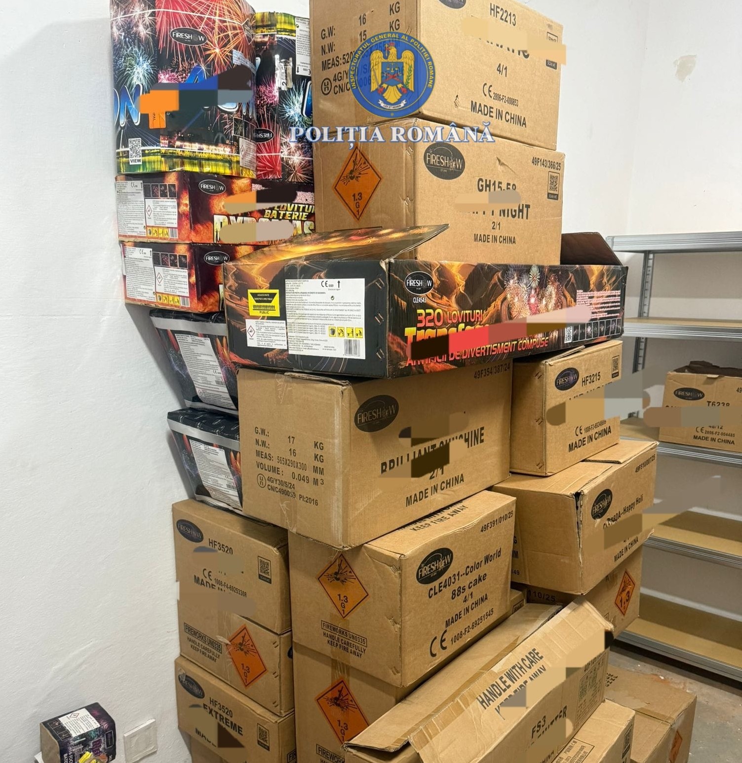 „Polițiștii din cadrul Serviciului Arme Explozivi și Substanțe Periculoase au pus în executare un mandat de percheziție domiciliară la locuința unui tânăr, de 19 ani, din județul Botoșani, bănuit de comiterea infracțiunii de folosirea de articole pirotehnice din categoriile F2, F3, F4, T1, T2, P1 și P2, efectuate fără drept”. În cadrul activităților desfășurate, la locația vizată au fost identificate și ridicate în vederea continuării cercetărilor aproximativ 1.600 de kg de articole pirotehnice din categoriile P1, F2, F3 și F4. Având în vedere faptul că persoana sus-menționată nu este autorizată să dețină, să depoziteze, să transporte și să comercializeze articole pirotehnice conform prevederilor Lg. nr. 126/1995 R, întreaga cantitate de materii explozive a fost ridicată în vederea continuării cercetărilor. Polițiștii continua cercetările pentru stabilirea întregii situații de fapt”, arată reprezentanții Poliției Botoșani.
