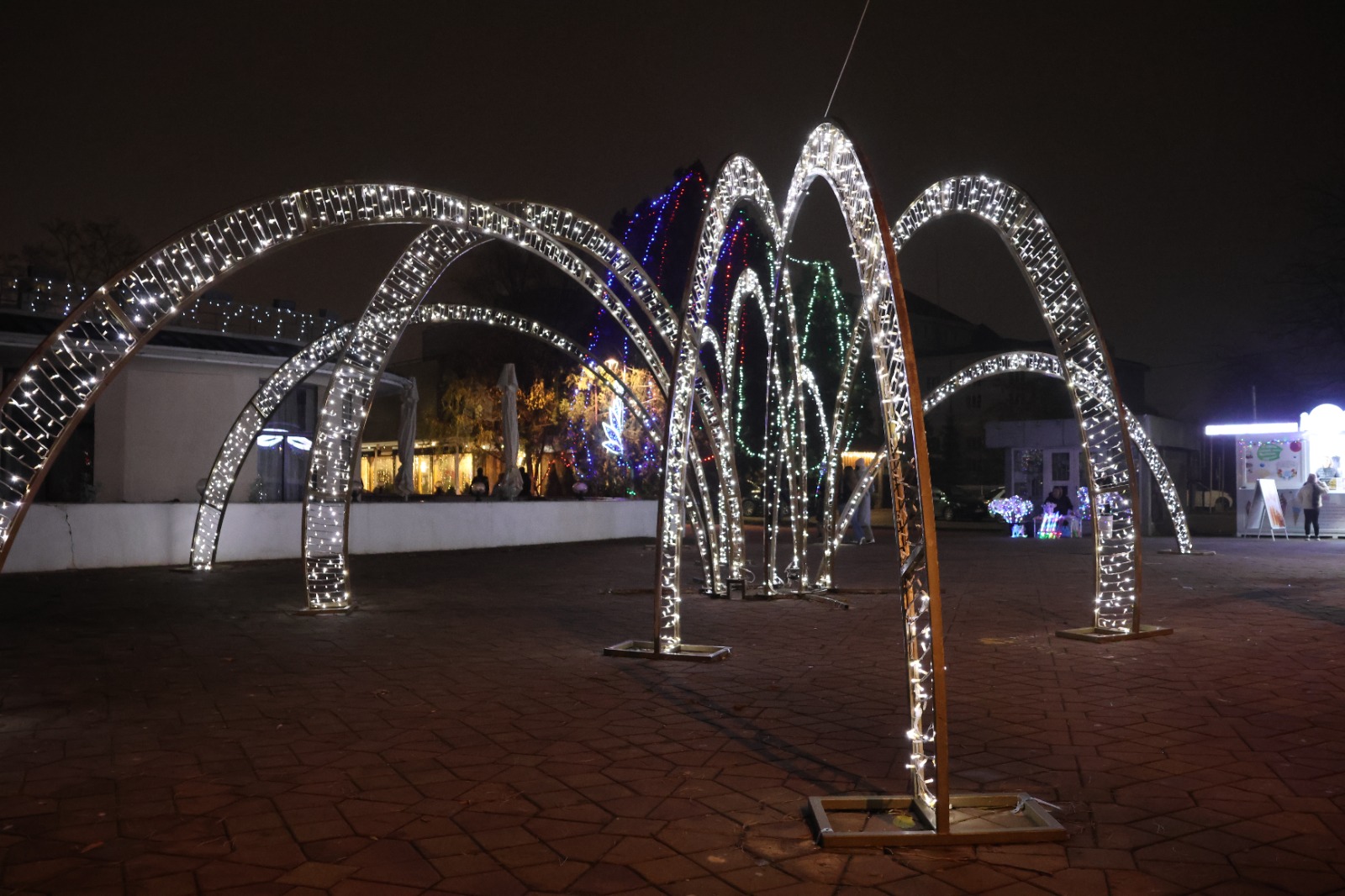 Pietonalul Unirii a devenit epicentrul acestei feerii. Arcade luminoase, ghirlande multicolore și figurine strălucitoare se întind deasupra capetelor trecătorilor.