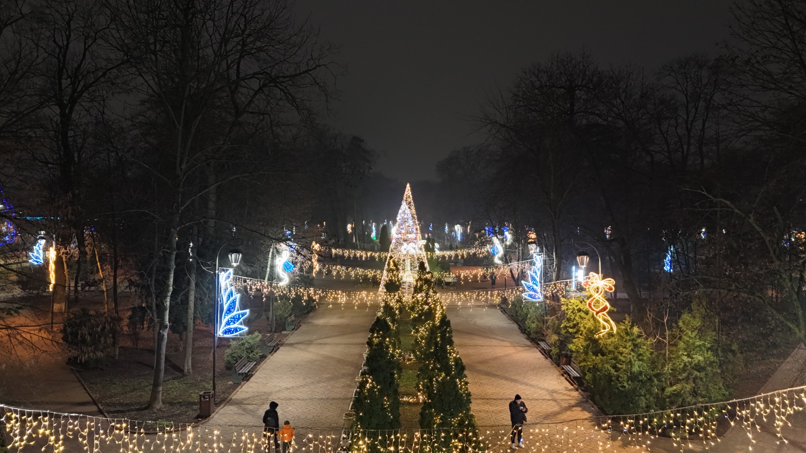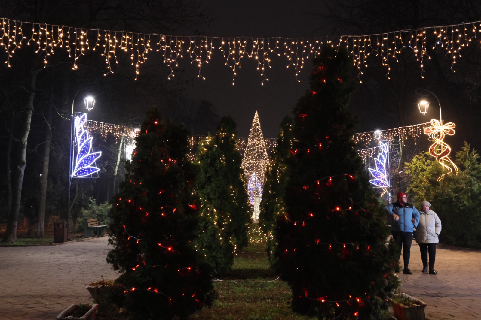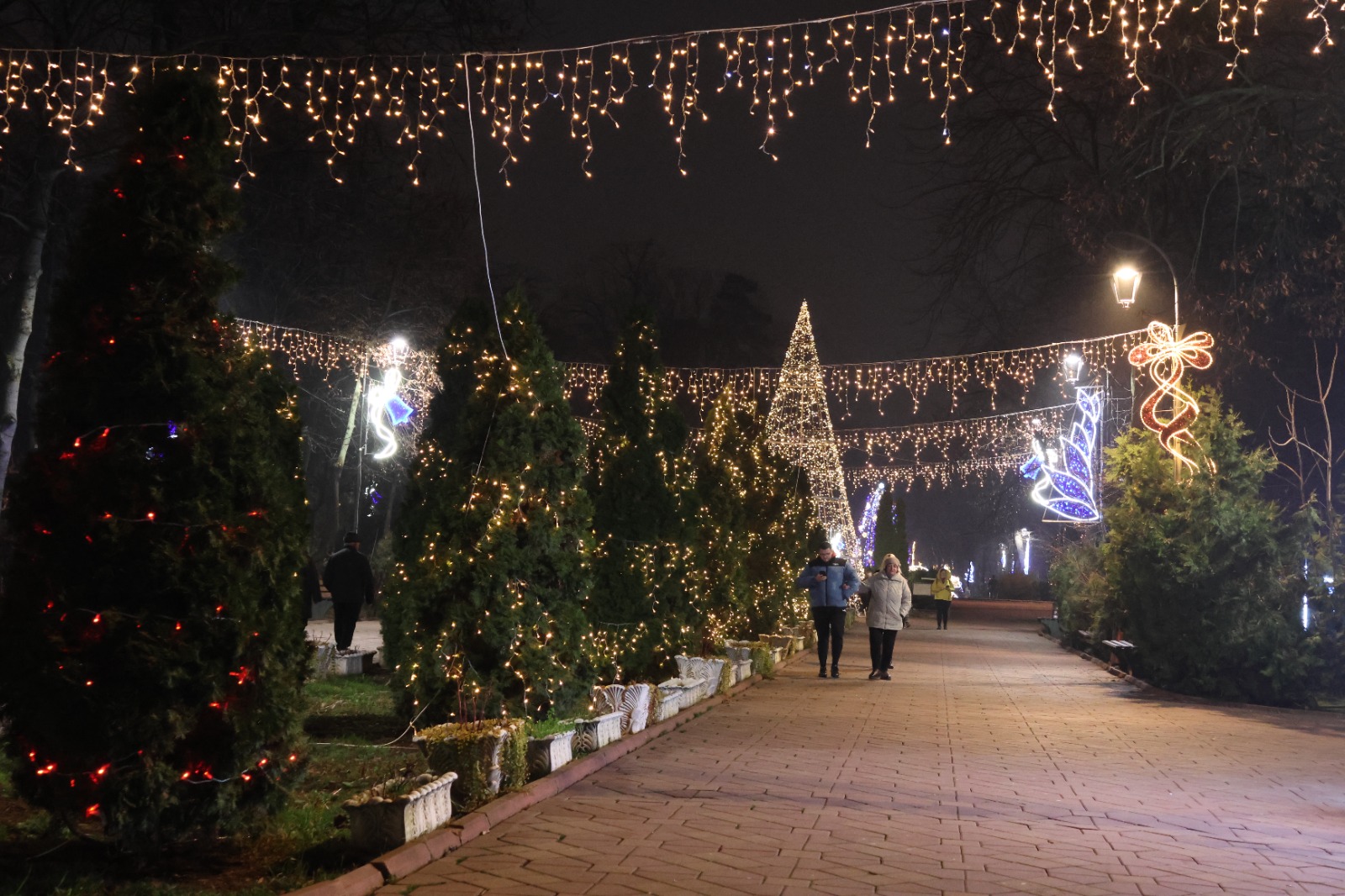 Parcul „Mihai Eminescu” strălucește și el cu instalații care conturează brazi stilizați, oameni de zăpadă și altele. Totul sclipește, în timp ce oamenii se plimbă agale pe trotuare, cu zâmbete largi pe fețe, scoși din rutina zilnică de acest spectacol de lumini.