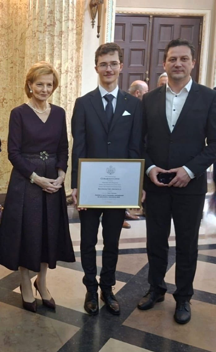 Botoșăneanul premiat cu aur la Olimpiada Internațională de Astronomie a primit distincție de la Majestatea Sa Margareta Custodele Coroanei Române și Alteța Sa Regală Principele Radu. Luni, 8 decembrie 2025, Majestatea Sa Margareta Custodele Coroanei Române și Alteța Sa Regală Principele Radu au găzduit, la Palatul Regal din București, Seara Regală dedicată Curajului Civic.