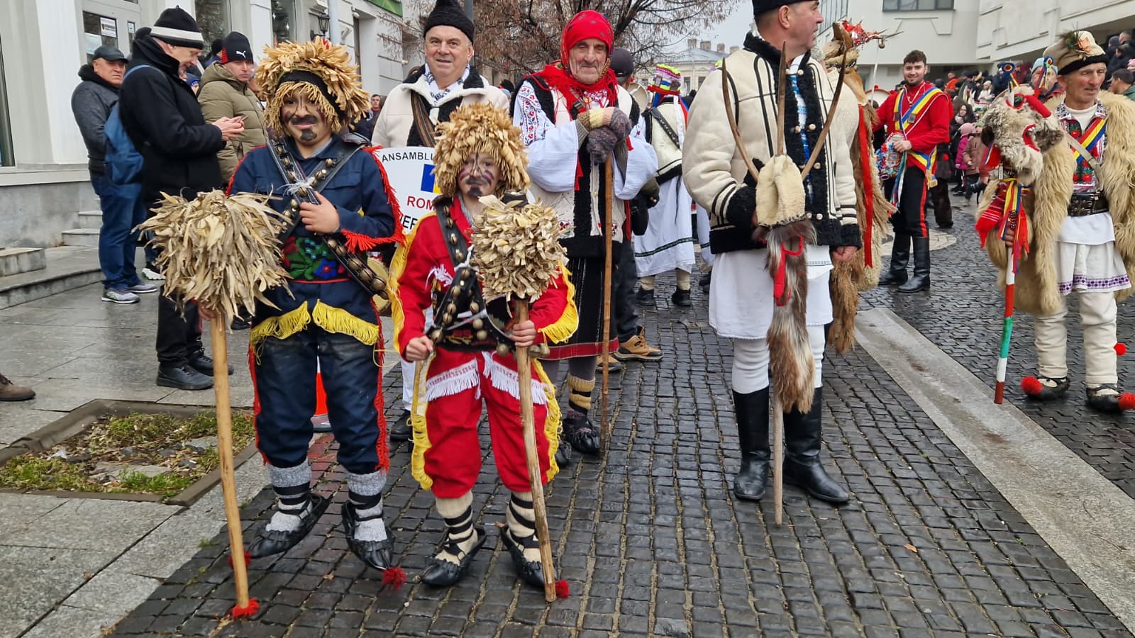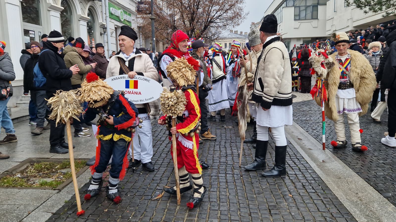 Micii străjeri din județul Suceava au făcut senzație, duminică, la Festivalul de Datini și Obiceiuri de la Botoșani. Cei doi copii fac parte din grupul Străjerii din Dolheștii Mici și au atras toate privirile prin costumația și jocul lor.