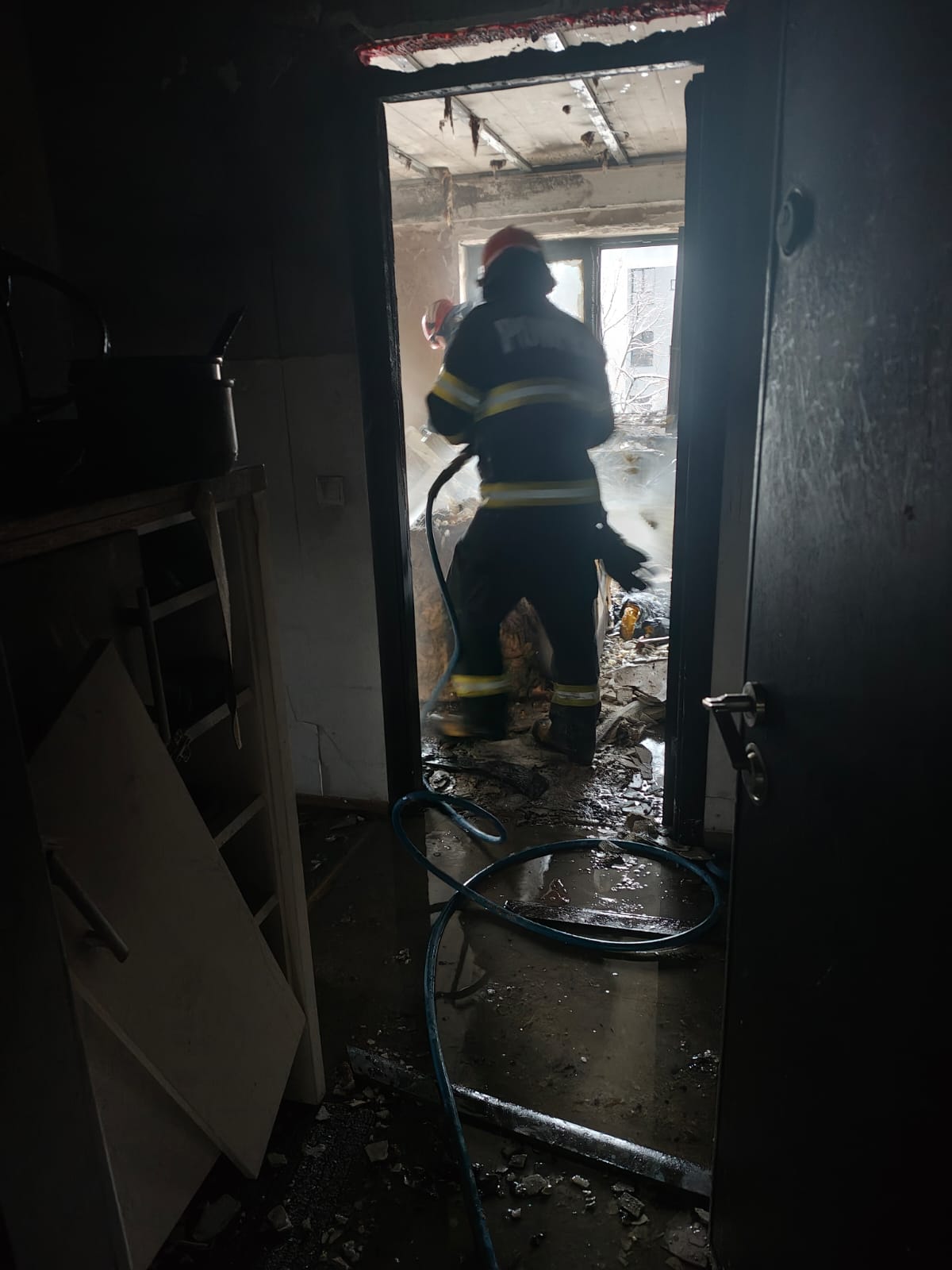 Incendiul a fost localizat rapid, fiind împiedicată extinderea flăcărilor la întregul apartament. Fumul a fost evacuat din scara blocului cu ajutorul unui ventilator. Nouă locatari au fost evacuați preventiv.