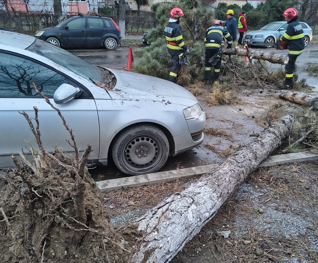 O nouă intervenție a pompierilor botoșăneni a avut loc duminică, în contextul Codului Portocaliu de vânt puternic aflat în vigoare, anunță Inspectoratul pentru Situații de Urgență (ISU) Botoșani. Echipaje din cadrul Detașamentului de Pompieri Botoșani au acționat pe strada Pacea, la intersecția cu bulevardul George Enescu, unde un copac a fost smuls din rădăcini de rafalele puternice de vânt și a căzut atât pe o mașină parcată, cât și pe partea carosabilă.