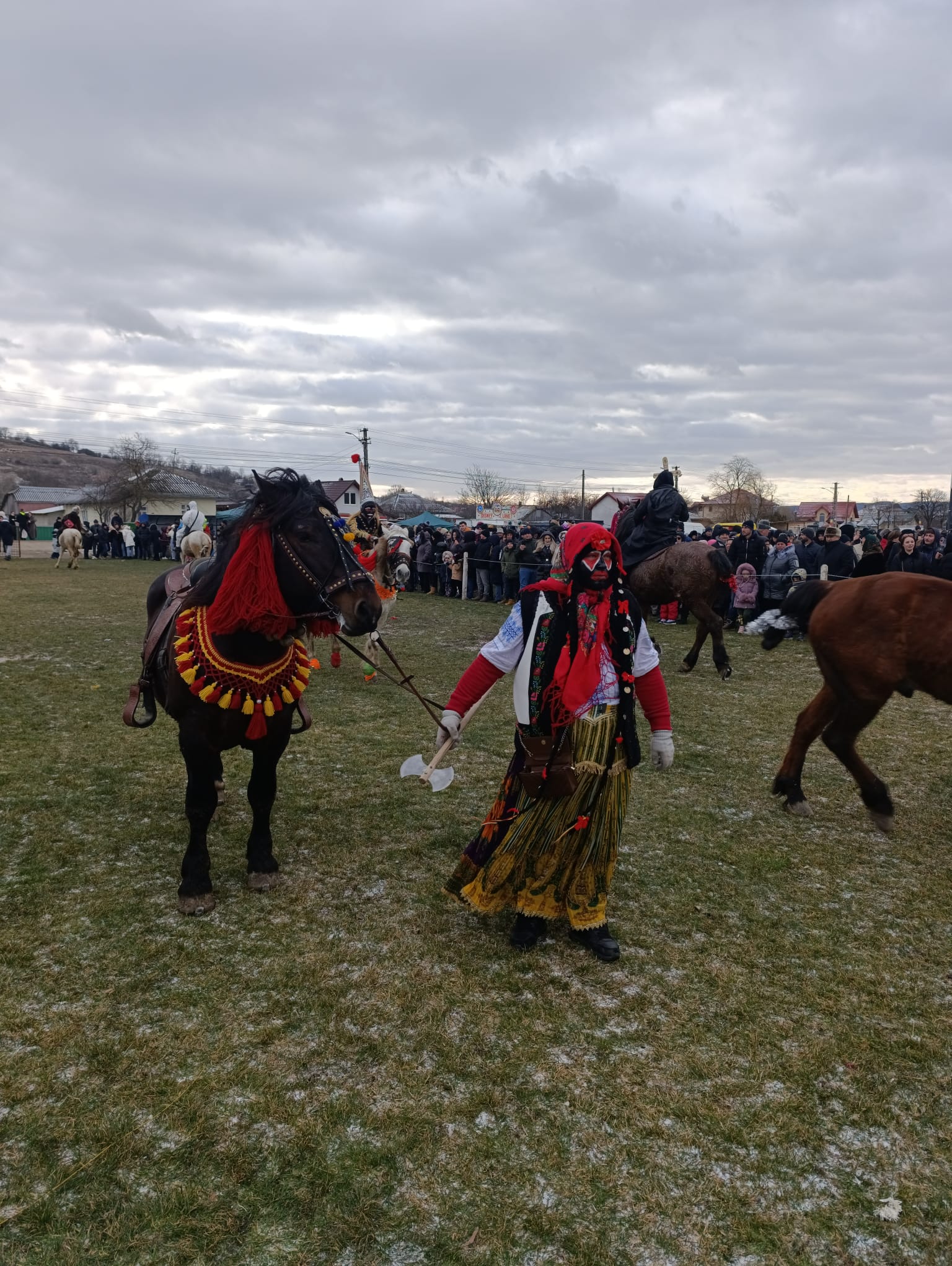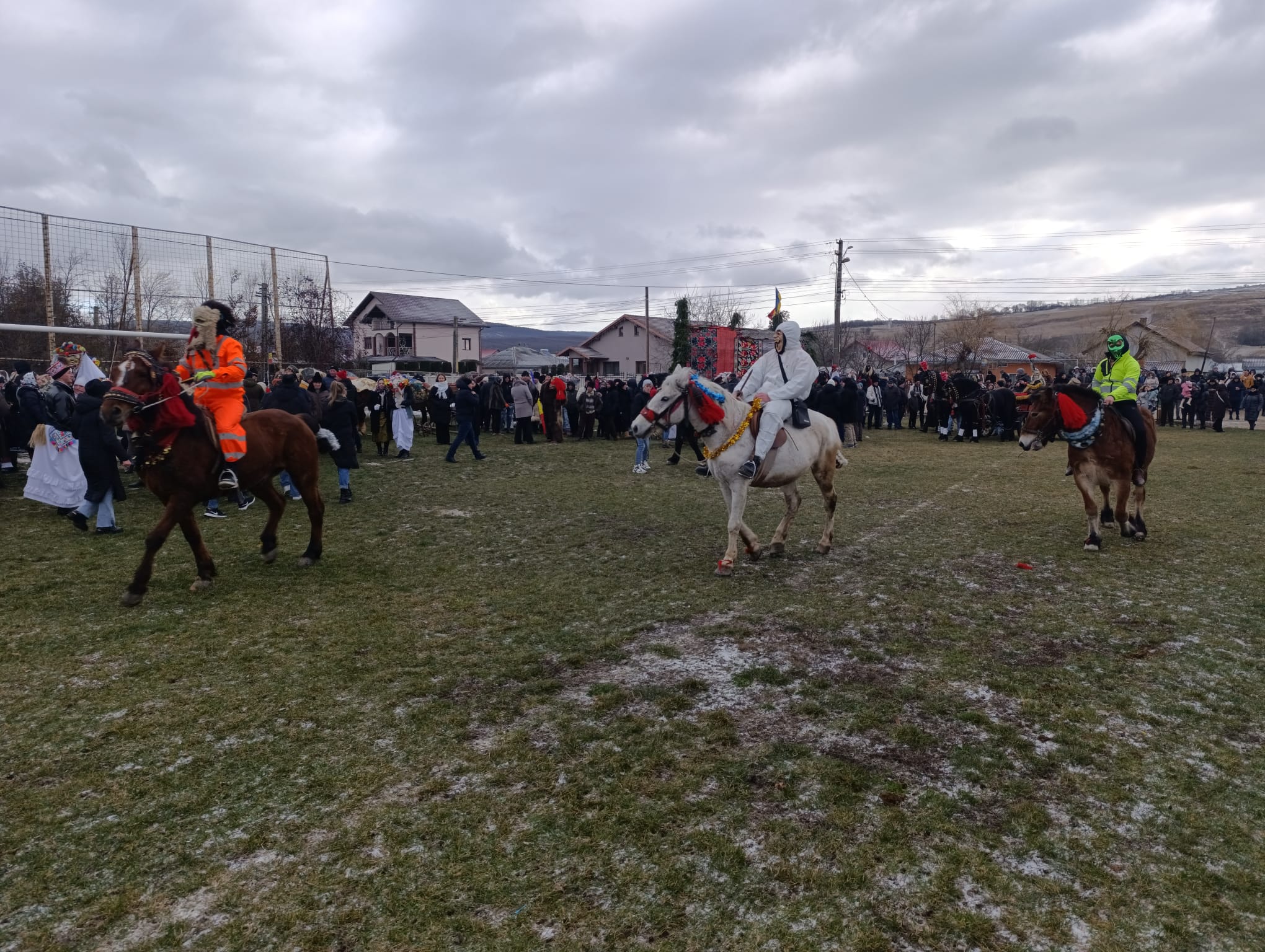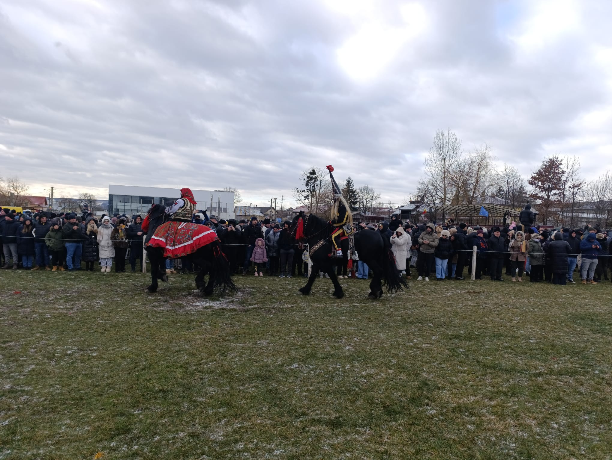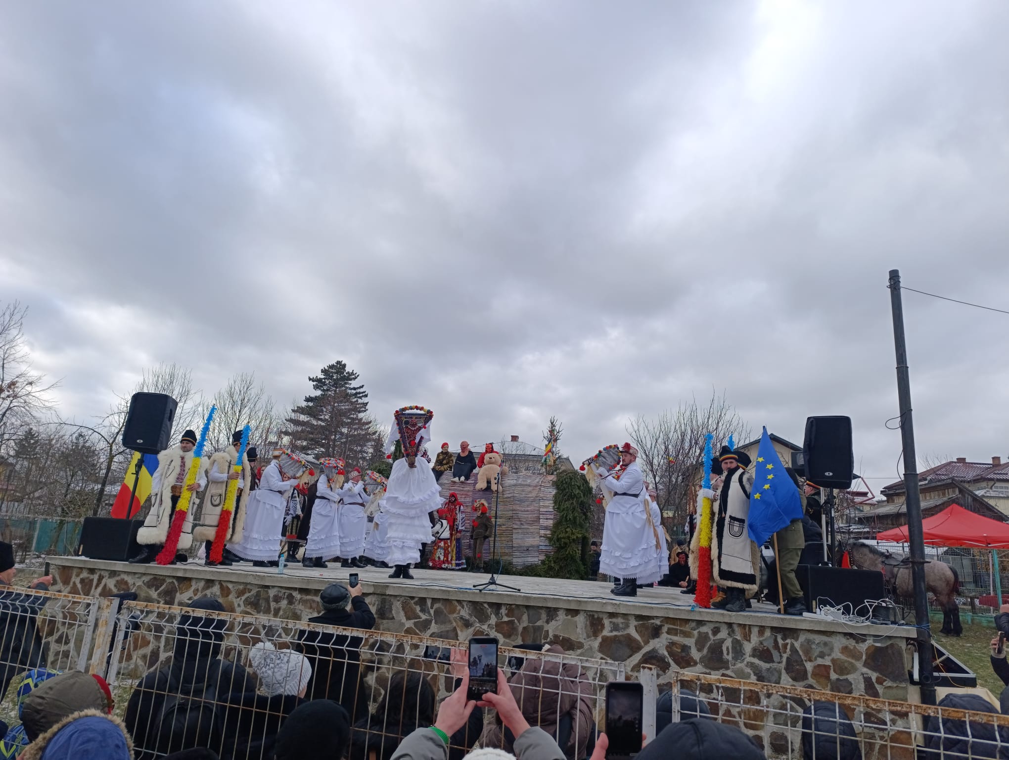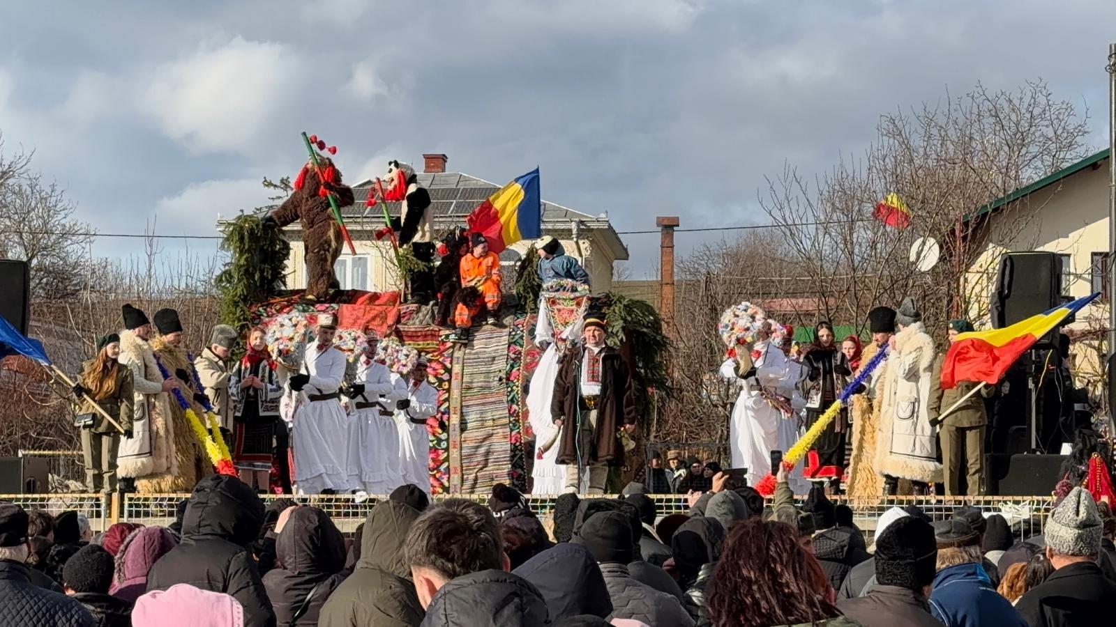 Spectacolul dinamic, cu strigături și cu multă veselie, îi ține pe cei prezenți cu zâmbetul pe buze. Și anul acesta, mii de oameni au înfruntat frigul năprasnic și s-au adunat la scenă pentru a vedea formațiile tradiționale.
