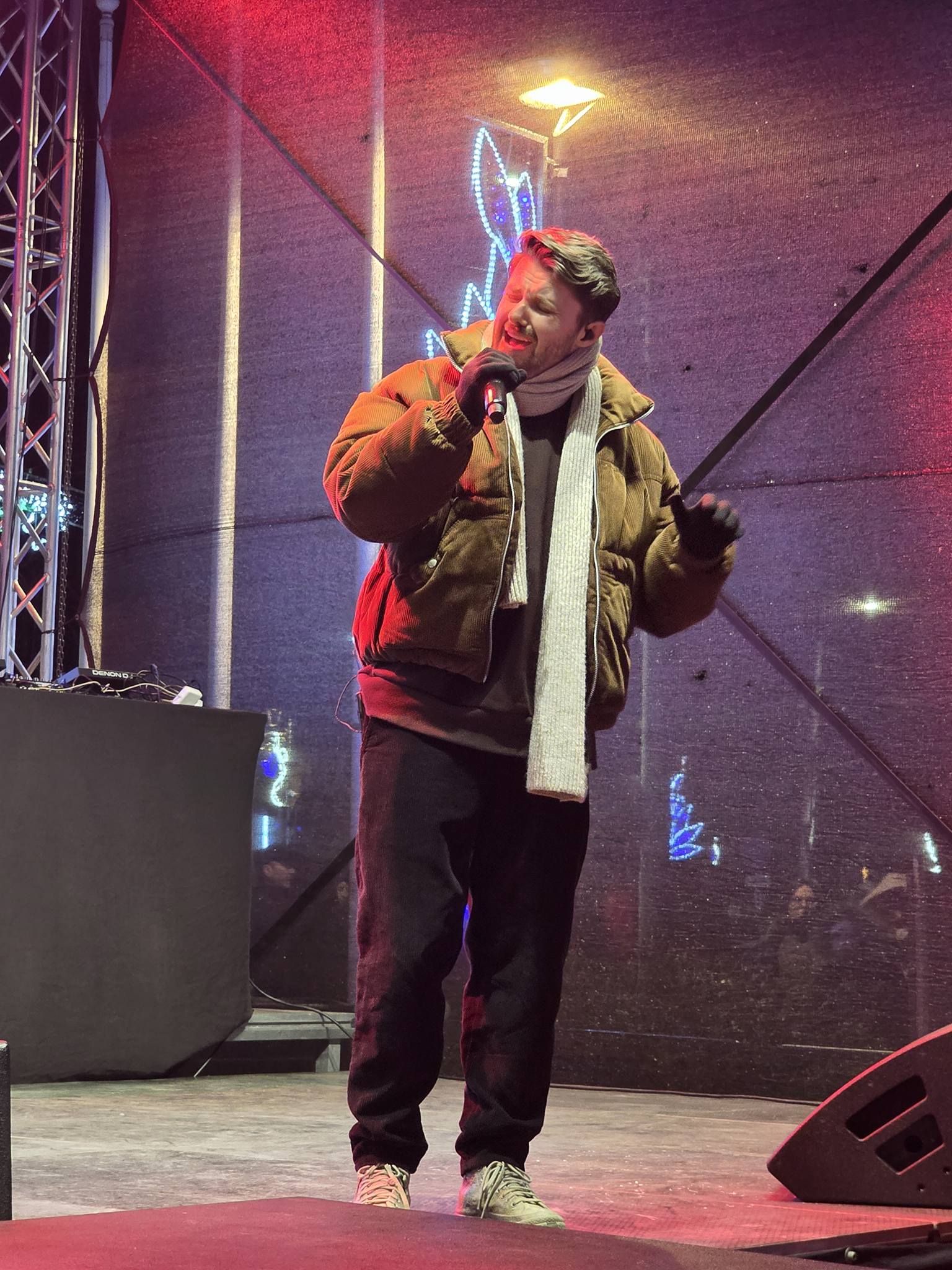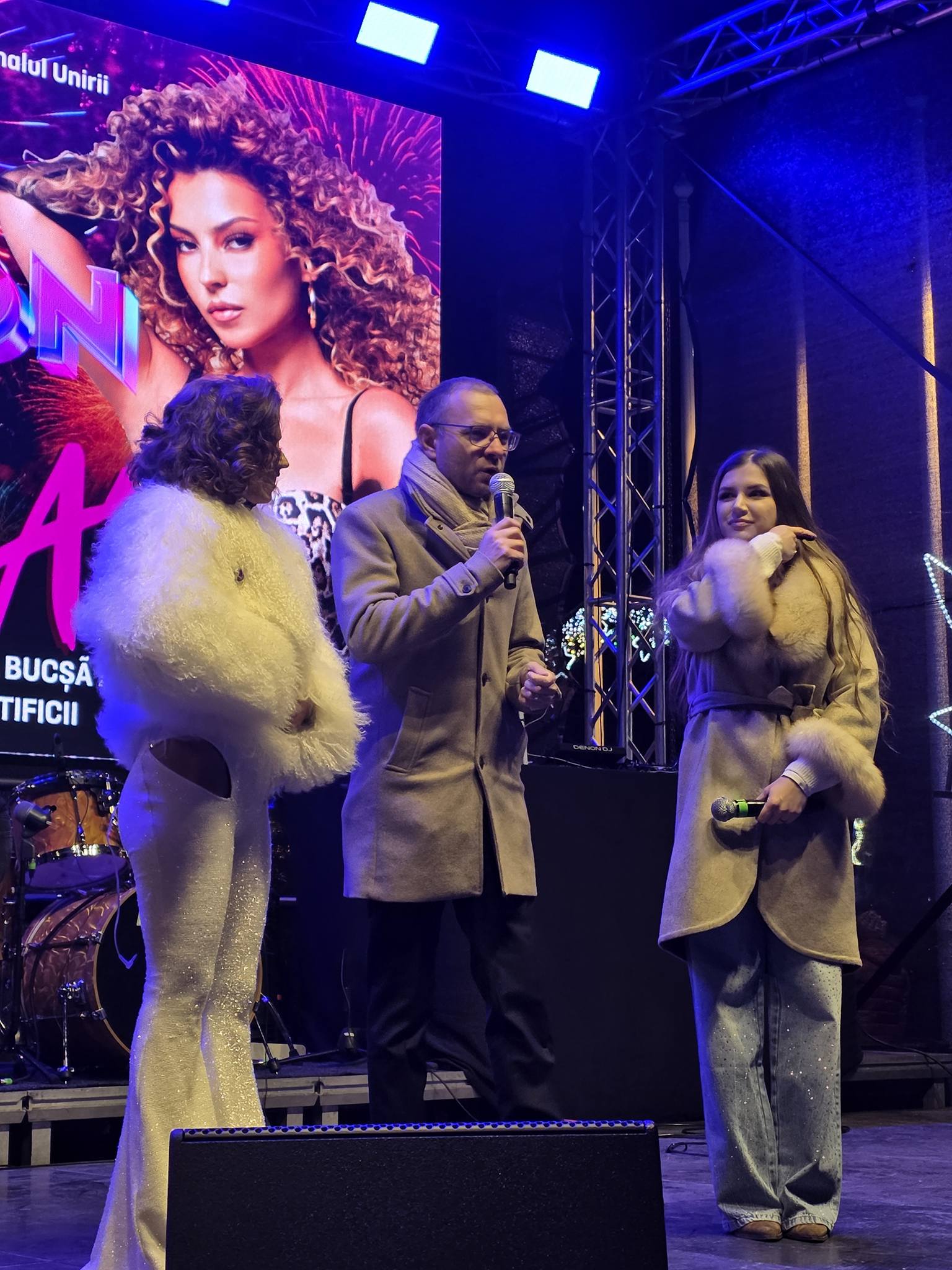 Pe scenă, la miezul nopții, a urcat și primarul Cosmin Andrei, cel care a făcut Revelionul la un restaurant din apropierea scenei.