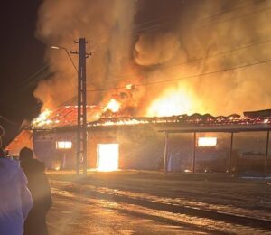 Au ars bucătăria de vară, două autoturisme, un compresor, mai multe unelte de construcții și tinichigerie auto, precum și o cantitate însemnată de materiale combustibile din lemn și plastic aparținând primariei și care se aflau în interiorul halei.