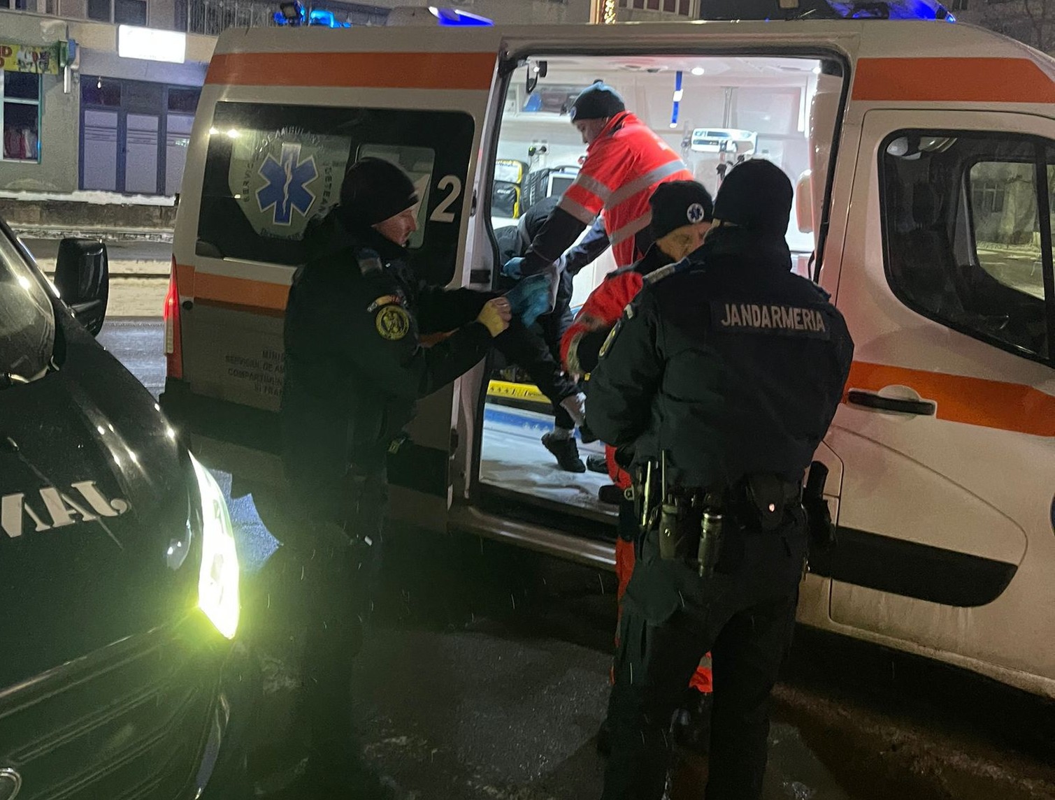 Jandarmii au solicitat sprijinul unei ambulanțe pentru acordarea de îngrijiri medicale, având în vedere și temperatura scăzută, care creștea riscul instalării în scurt timp a hipotermiei.