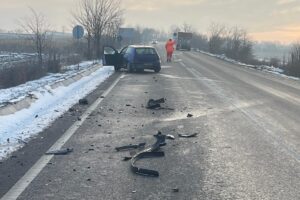 Două maşini au intrat în coliziune, miercuri dimineaţă, pe drumul european E58 , pe raza comunei Băluşeni. Accidentul s-a produs într-o curbă, după ce una dintre maşini ar fi trecut de axul drumului.