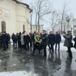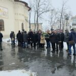 Ulterior, la statuia marelui poet, din curtea bisericii Uspenia, s-au depus coroane și jerbe de flori.