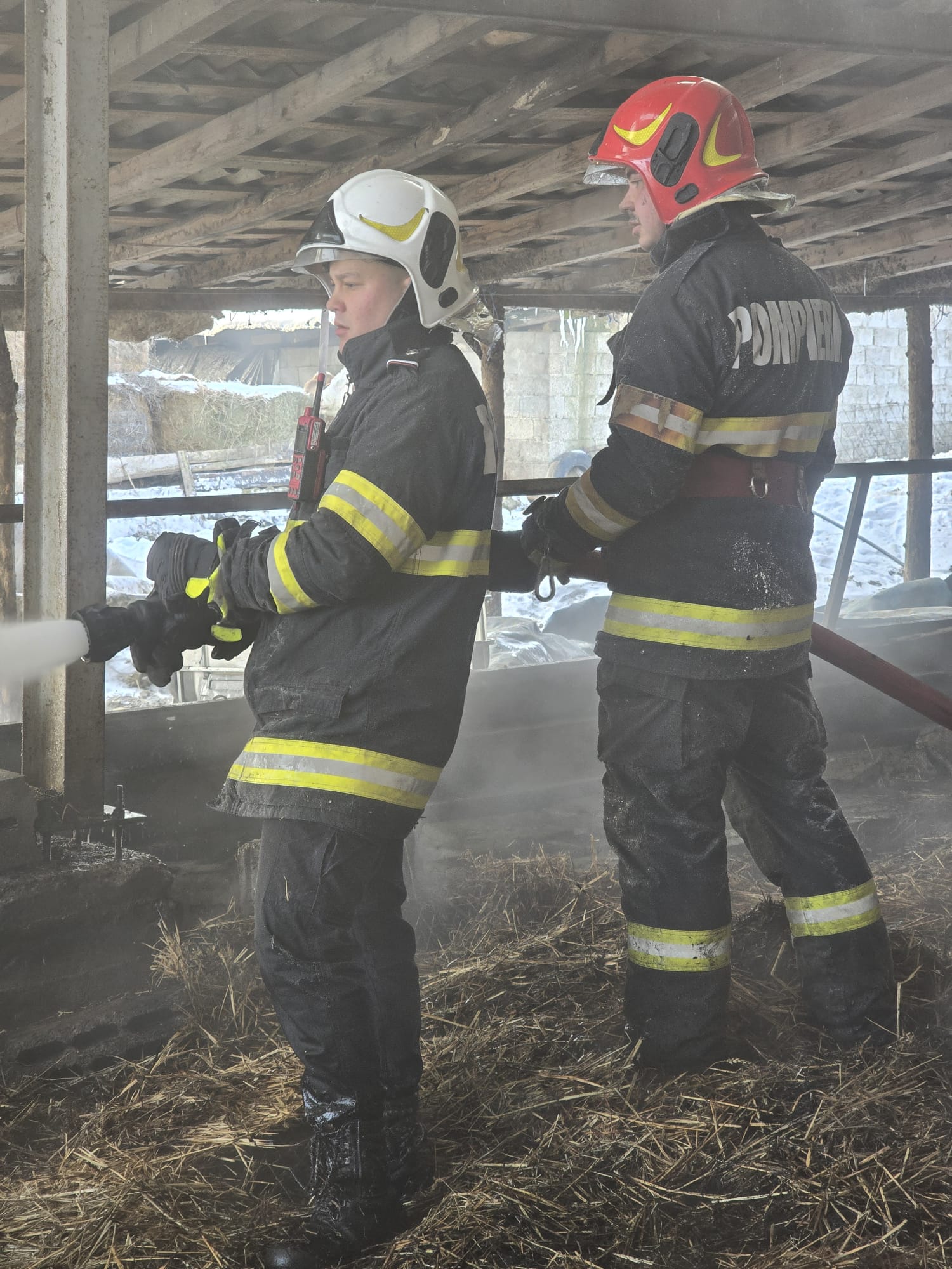 Până la sosirea pompierilor, toate animalele din interior au fost evacuate. Este vorba despre 30 de vaci, 60 de oi și patru porci. Două bovine au suferit arsuri ușoare.