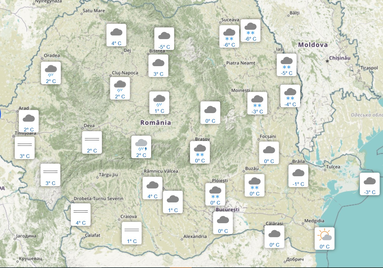 La Staţia Meteo din municipiul Botoşani, termometrele indicau o valoare de -6,6 grade.