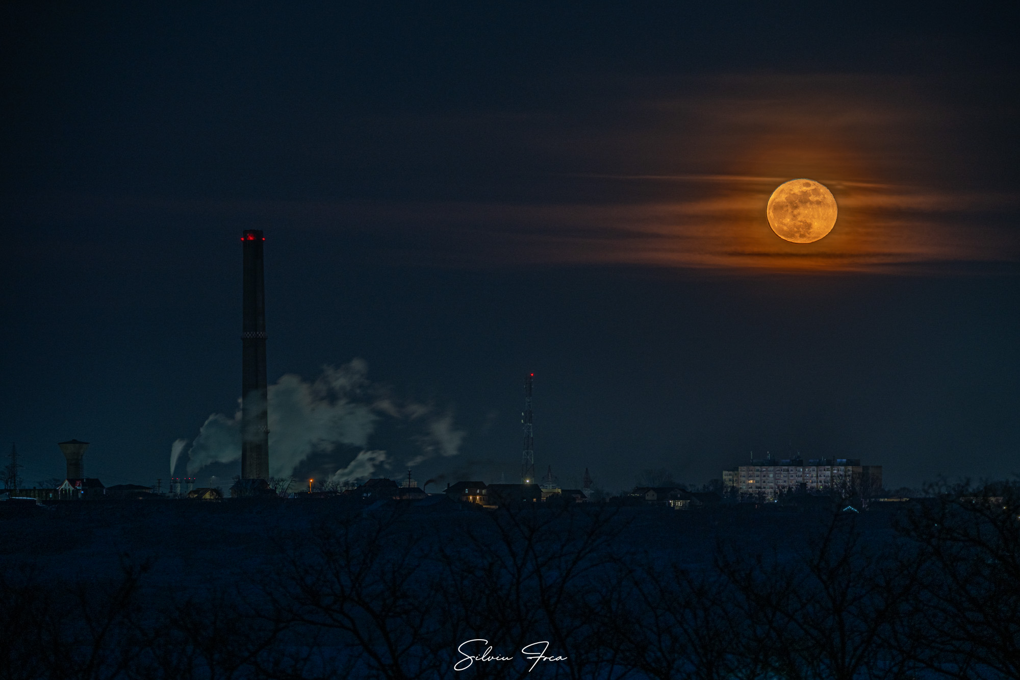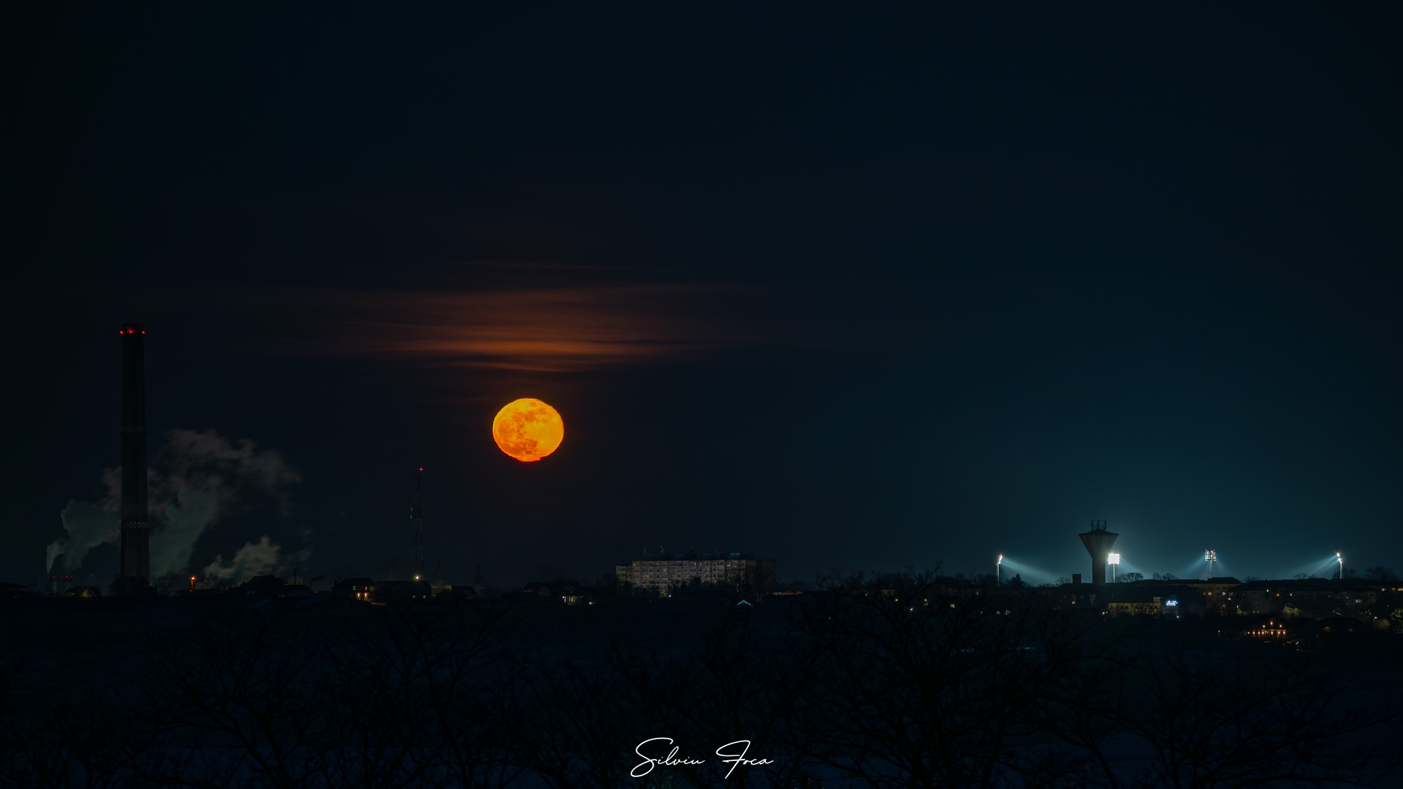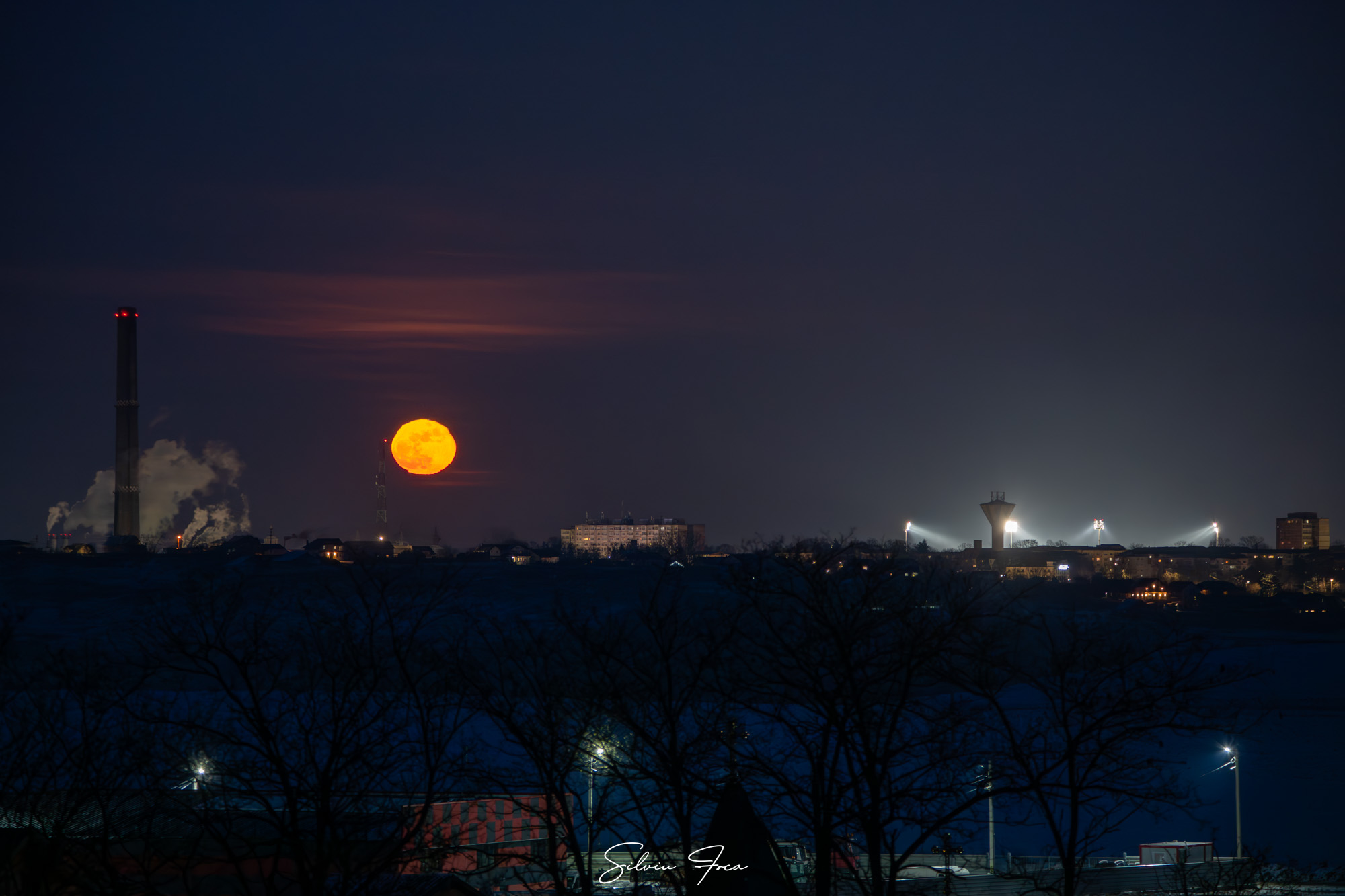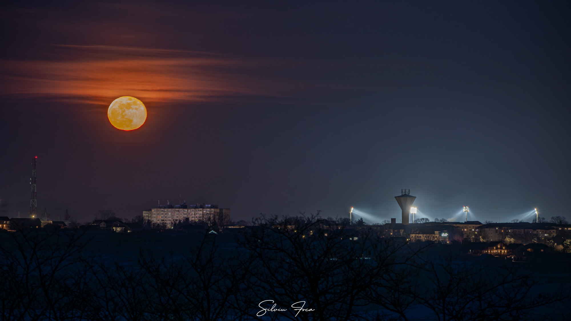 „”Luna zăpezii” cum este numită luna plină din februarie chiar a venit cu zăpadă și cel mai important cu un ger năpraznic. La -10 grade mi-au înghețat mâinile trăgând câteva cadre cu luna plină deasupra Botoșaniului chiar în timpul partidei de fotbal cu Oțelul Galați. Unii s-au dus la meci, alții la spectacol. Spectacolul naturii”, precizează artistul fotograf.