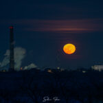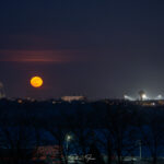 Deși condițiile au fost extreme, artistul a reușit să captureze câteva cadre spectaculoase cu luna plină tronând deasupra orașului.
