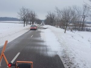„Ușor viscol la sol pe DN 29A, Hudești, județul Botoșani. Echipele DRDP Iași sunt în patrulare pe acest sector, pentru asigurarea traficului. Circulați cu atenție!”, susțin cei de la DRDP Iași.