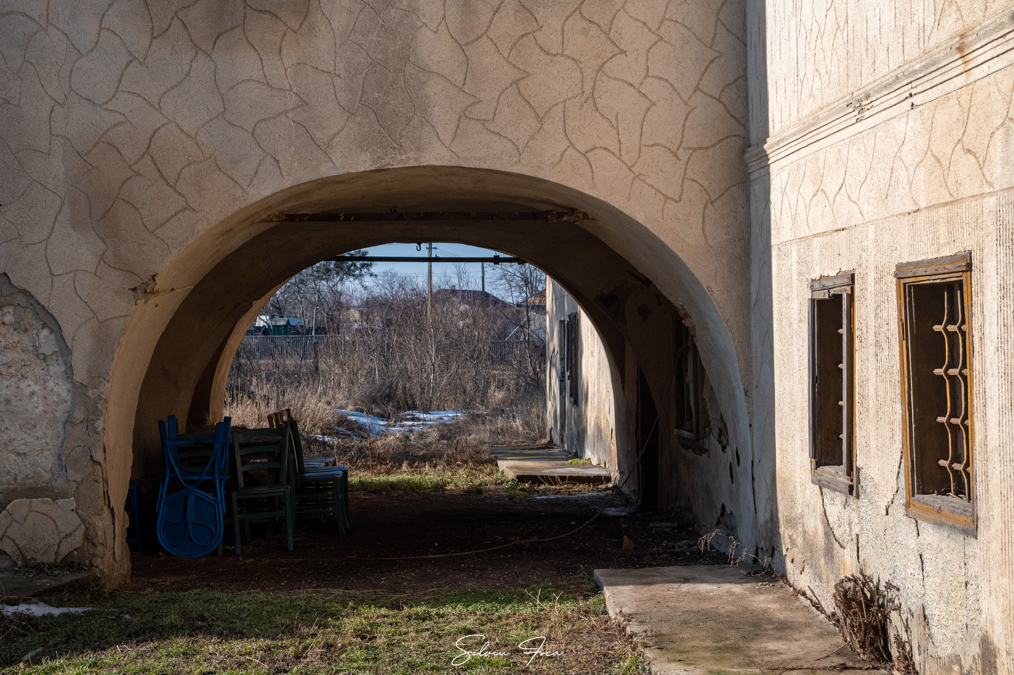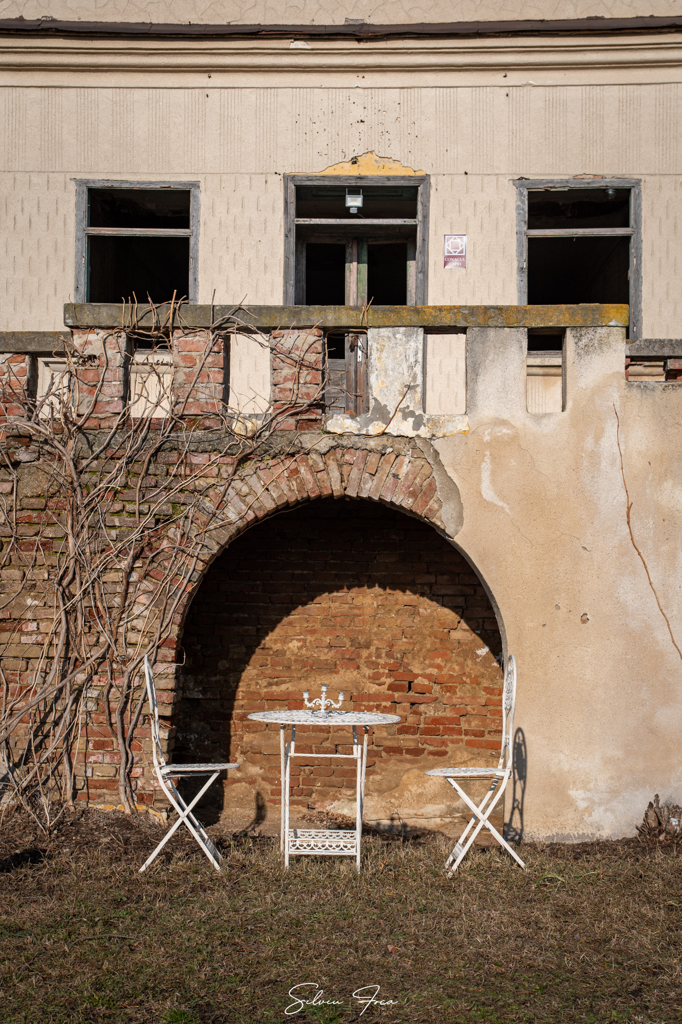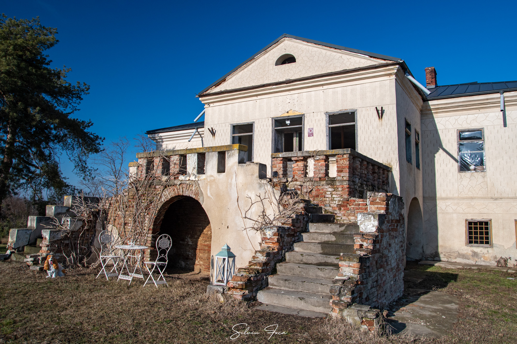 Privit de la distanță, conacul pare o barieră în timp. Deși tencuiala s-a măcinat sub asaltul deceniilor, iar natura a început să-și reintre în drepturi, liniile arhitecturale trădează „strălucirea de altădată”. Ferestrele înalte, proporțiile armonioase și detaliile fațadei amintesc de balurile și recepțiile care însuflețeau cândva aceste saloane.