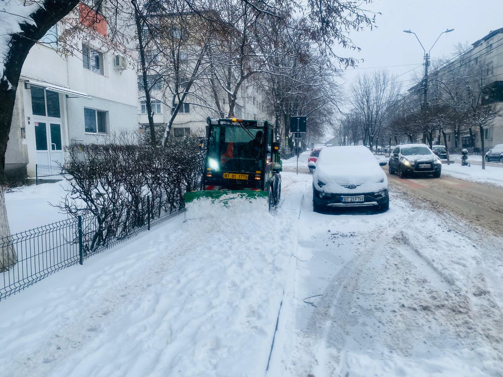 Pe fondul precipitațiilor sub formă de ninsoare, operatorul de salubrizare al municipiului Botoșani, Urban Serv, a intervenit pe parcursul întregii nopți, cu 11 utilaje pentru a degaja zăpada de pe carosabil și cu 4 utilaje pe partea de trotuare și alei. S-a intervenit și cu material antiderapant, fiind folosite aproximativ 100 tone de sare și clorură de calciu.
