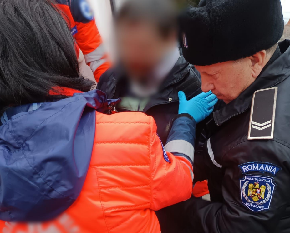 Un bărbat s-a prăbușit, miercuri, pe trotuar, pe strada Nicolae Iorga, din municipiul Botoșani. Polițiștii locali l-au observat în dreptul unei unități comerciale. Era inconștient și sângera. Polițiștii locali au apelat SNUAU 112, solicitând ajutor medical.
