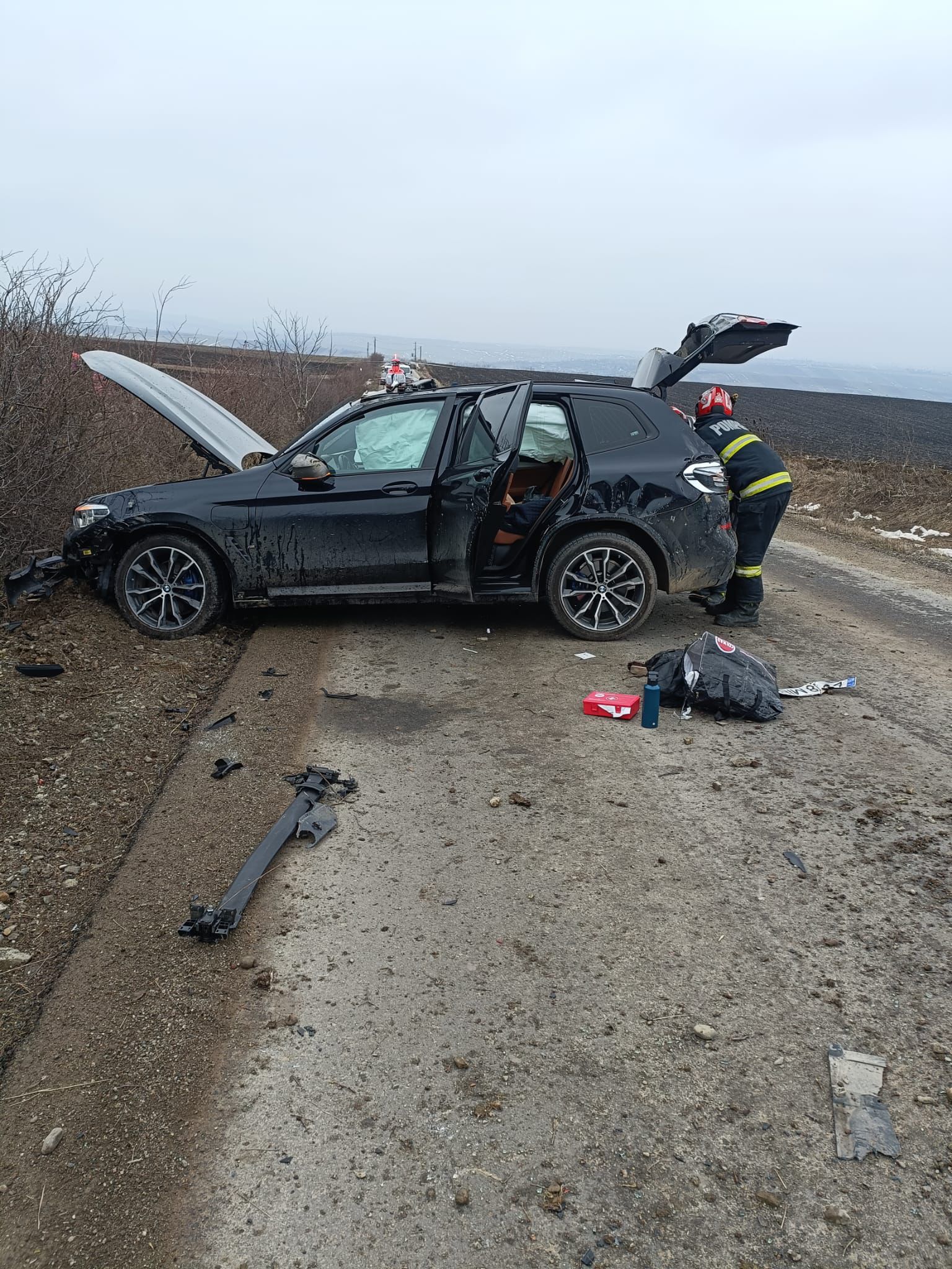 Echipele de salvatori sosite la fața locului au constatat că în eveniment a fost implicat un singur autoturism. În urma impactului violent, mașina s-a răsturnat, iar pasagerul din dreapta față, o femeie, a fost proiectată în afara vehiculului.