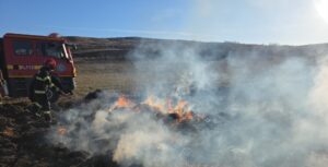 Un incendiu s-a produs, marți după-amiază, în localitatea Șendriceni. Furajele depozitate pe un câmp au fost cuprinse de flăcări.