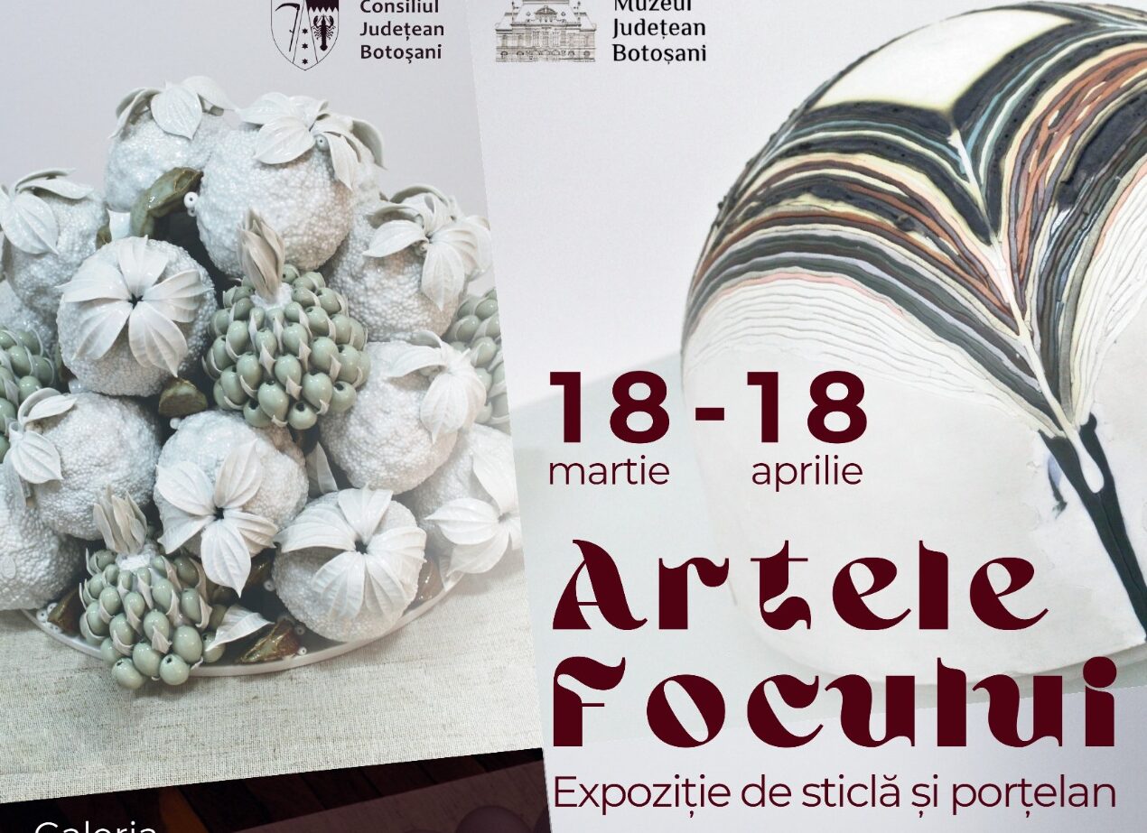 Muzeul Județean Botoșani organizează, în perioada 18 martie – 18 aprilie 2026, în spațiul Galeriei „Colecția de Artă”, expoziția „Artele focului”, cu lucrări din patrimoniul Muzeului de Științele Naturii Dorohoi (Galeria de Artă Contemporană Sticlă-Porțelan).