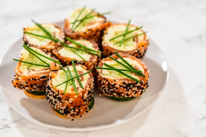 Truc util: după ce le rulezi, învelește-le strâns în folie alimentară și ține-le la frigider 15–20 de minute. Se vor tăia mai ușor și își vor păstra forma. Servește-le alături de limonadă rece sau apă minerală cu felii de lămâie.