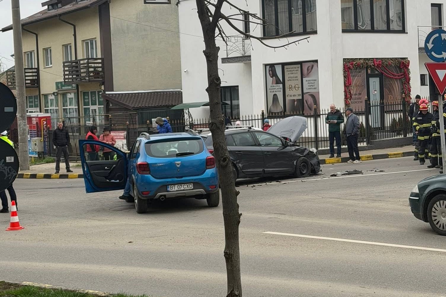 Un accident rutier a avut loc joi, în municipiul Botoșani. Două mașini s-au ciocnit într-o intersecție. Evenimentul s-a produs în sensul giratoriu din zona Liceului Economic.