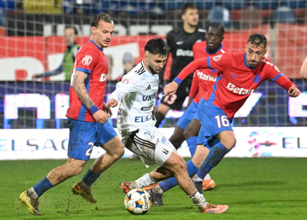Finalul primei reprize a aparținut tehnologiei și lui Florin Tănase. După o analiză VAR maraton de cinci minute, atacantul roș-albaștrilor a transformat cu sânge rece un penalty printr-o „scăriță” elegantă, trimițând FCSB la vestiare cu avantaj.