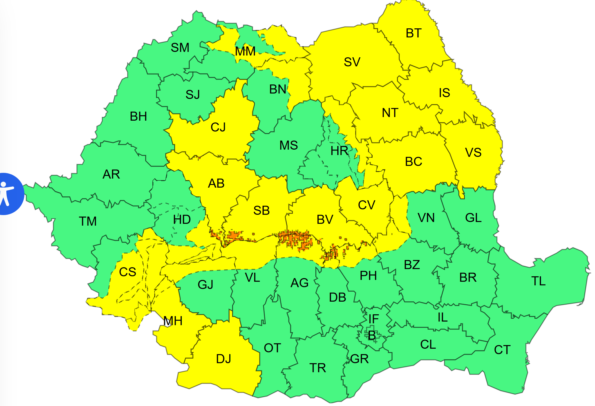 Pentru Carpații Meridionali, a fost emis un Cod portocaliu valabil în același interval orar.