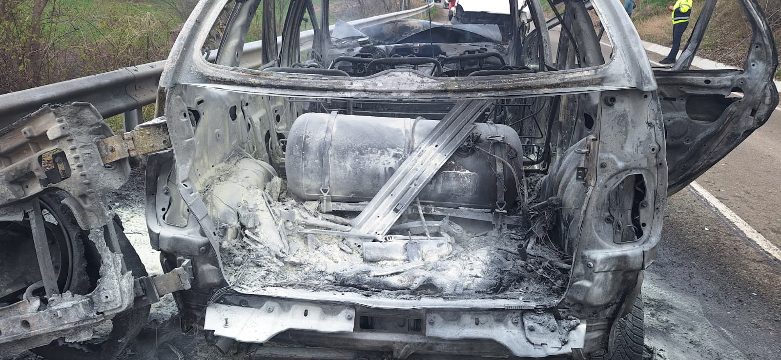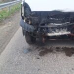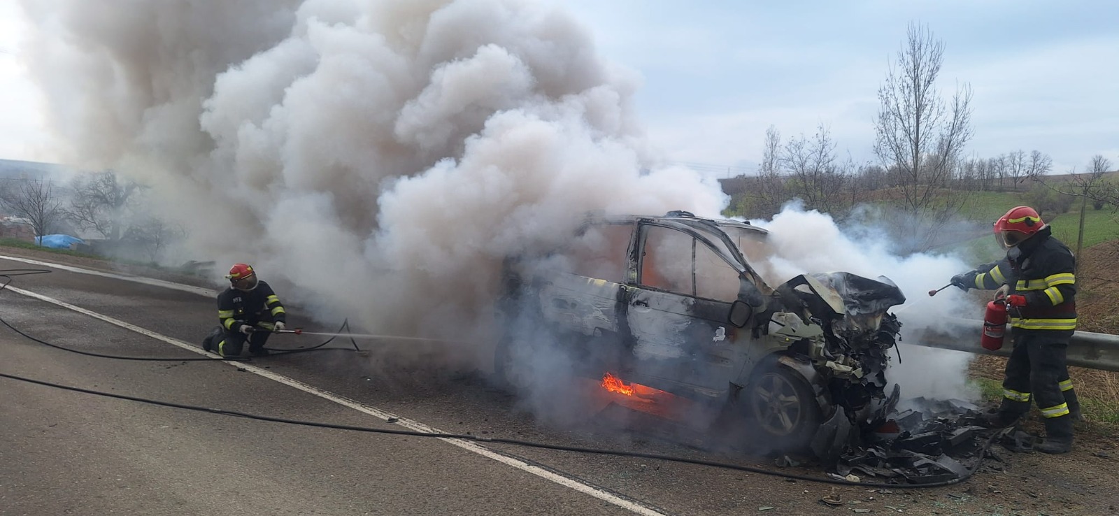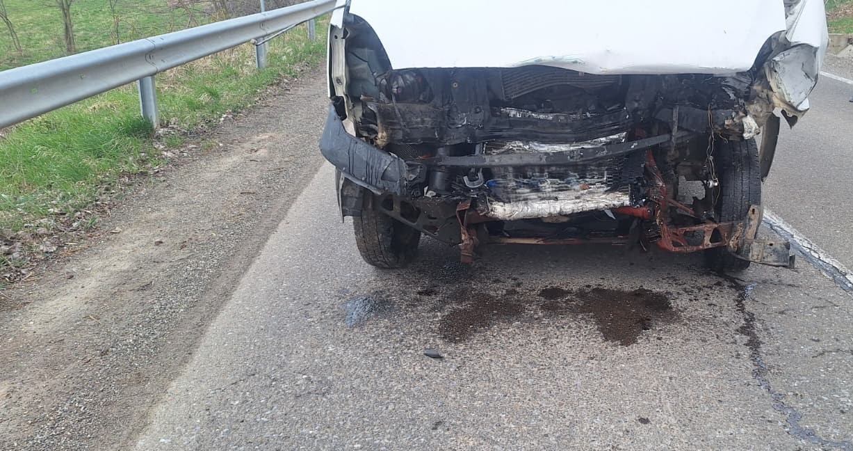 Evenimentul rutier s-a produs între o autoutilitară și un autoturism, acesta din urmă fiind cuprins de flăcări în urma impactului. Autoturismul, dotat cu butelie GPL, ardea în totalitate, existând și pericolul de explozie.