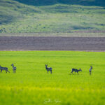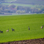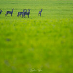 Uneori, cele mai frumoase momente nu sunt cele planificate meticulos, ci acelea care te surprind prin geamul mașinii, într-o zi obișnuită de primăvară. Fotograful Silviu Foca a surprins un grup de căprioare ieșite la „festinul” de un verde crud al câmpului.