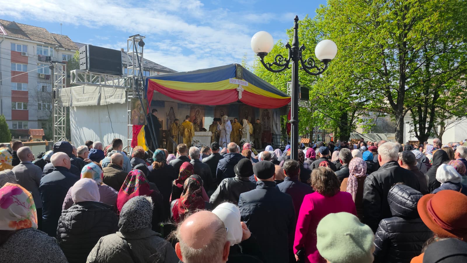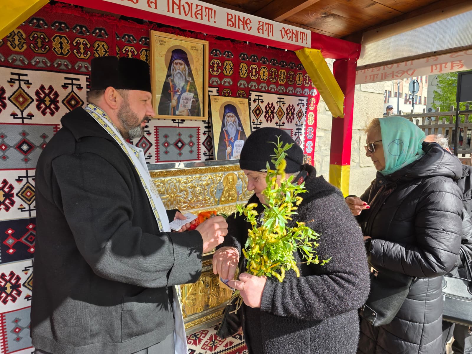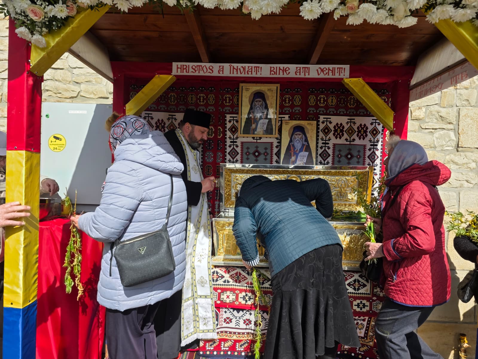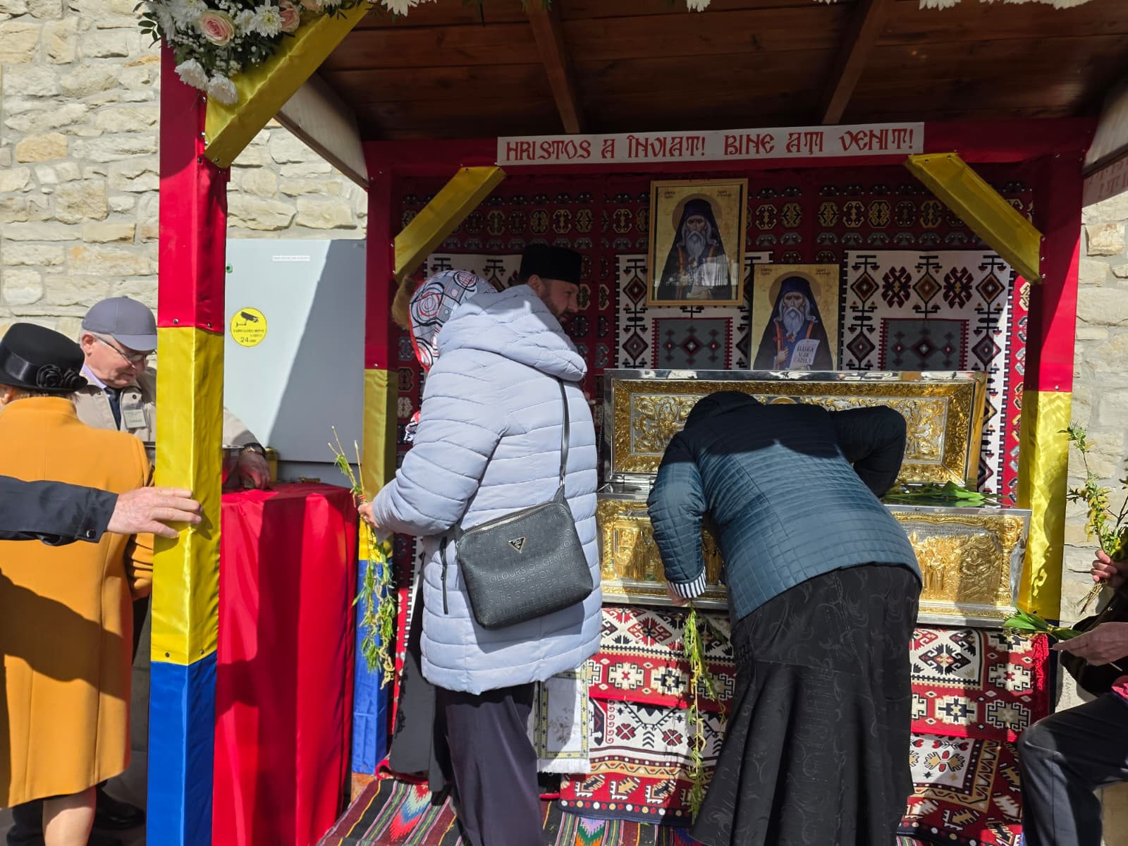 Uniți în rugăciune, oamenii s-au adunat și în acest număr foarte mare pentru a asculta Sfânta Liturghie, dar și pentru a se închina la racla cu moaștele Sfântului Cuvios Cleopa, care au fost aduse special cu acest prilej.