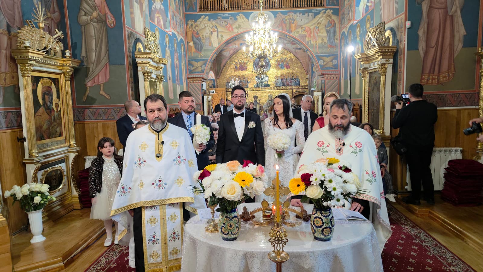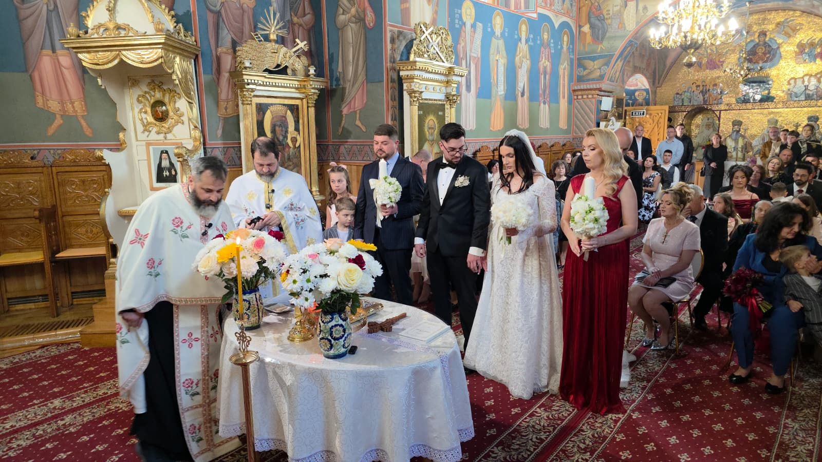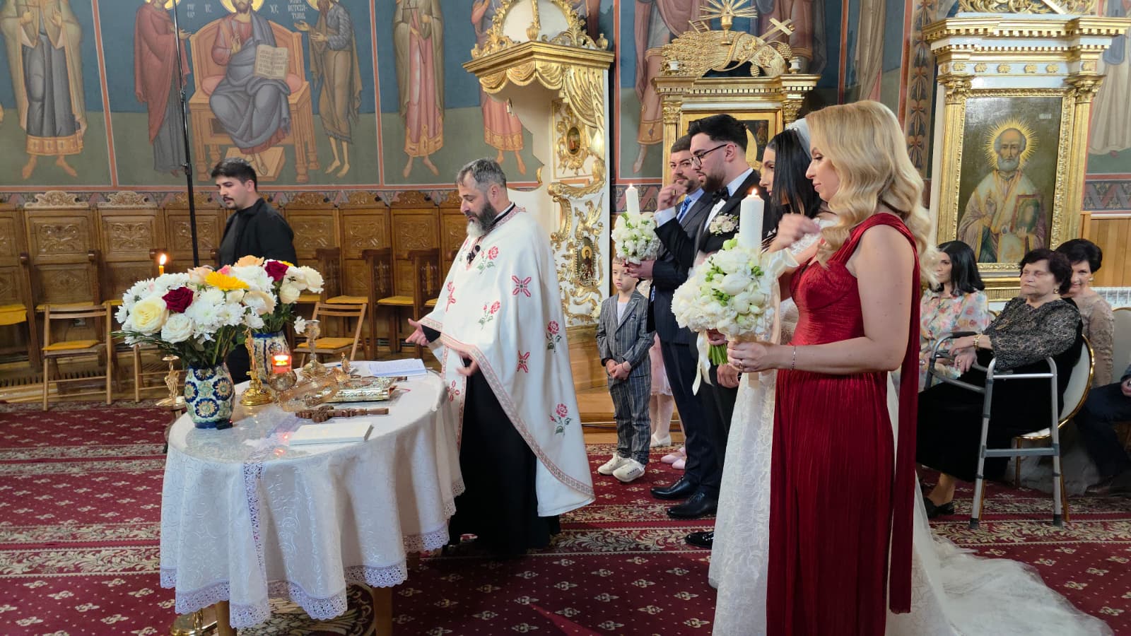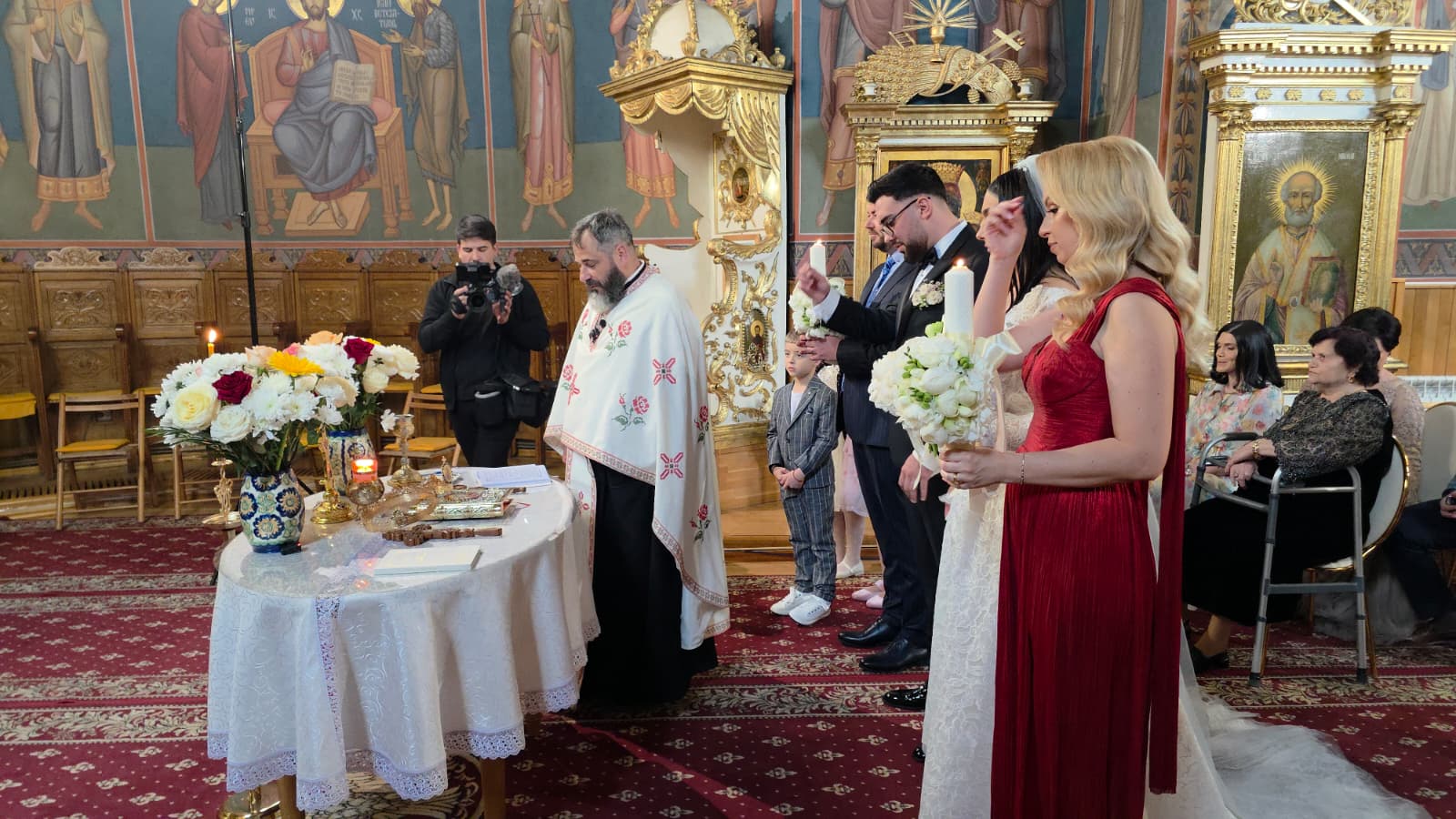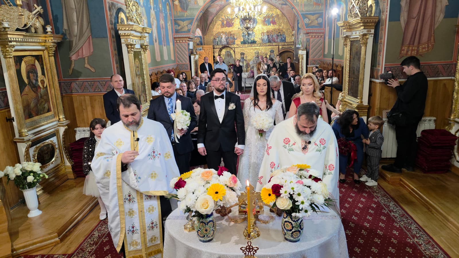 Tinerii au primit taina cununiei la Biserica Ortodoxă „Sf. M. Mc. Dimitrie” din Botoșani. Alături de ei, în rolul de părinți spirituali, au fost nașii Răzvan și Ioana Barabaș. Prieteni apropiați ai familiei, aceștia și-au asumat misiunea de a ghida noul cuplu cu sfaturi înțelepte și de a păstra vie flacăra tradiției. Nici nașii nu s-au lăsat mai prejos în ceea ce privește ținutele, onorând evenimentul cu o prezență impecabilă.