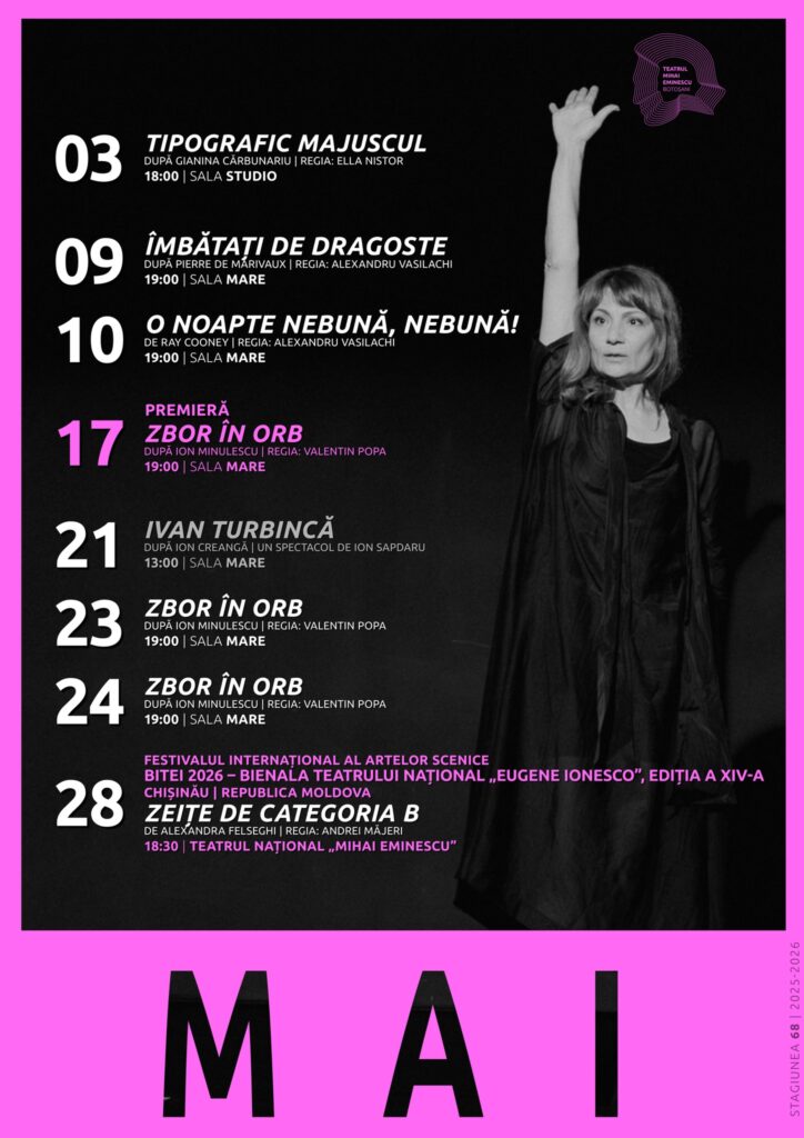 Luna mai aduce pe scena Teatrului Mihai Eminescu din Botoșani emoții autentice, povești puternice și momente pline de umor! Biletele se pot procura de la Agenția teatrală din interiorul instituției de cultură sau online https://eventbook.ro/program/teatrul-mihai-eminescu-botosani.