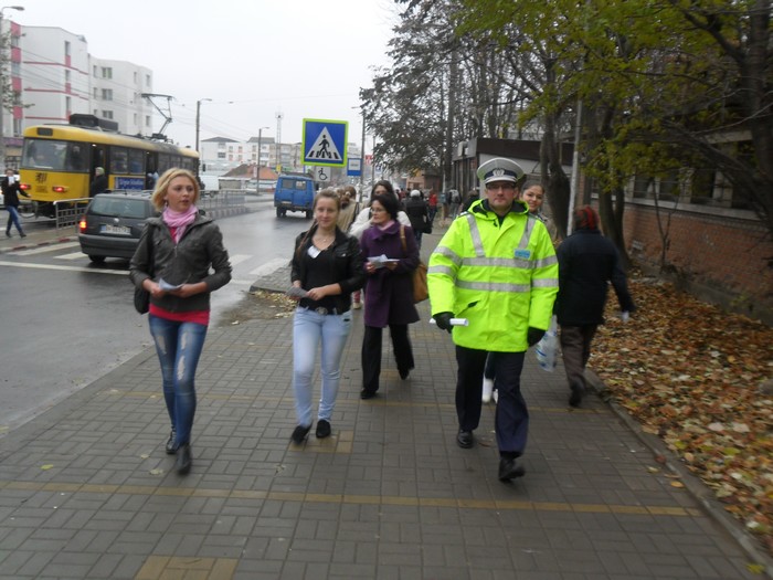 Date fiind riscurile la care populaţia este expusă din perspectiva ipostazei de pieton, elevii s-au informat asupra normelor de circulaţie pe drumurile publice şi au distribuit pliante trecătorilor în apropierea trecerilor de pietoni, în prezenţa unui reprezentant al Poliţiei Rutiere Botoşani şi al profesorilor Humă Alina-Manuela şi Ştefănescu Mirela.